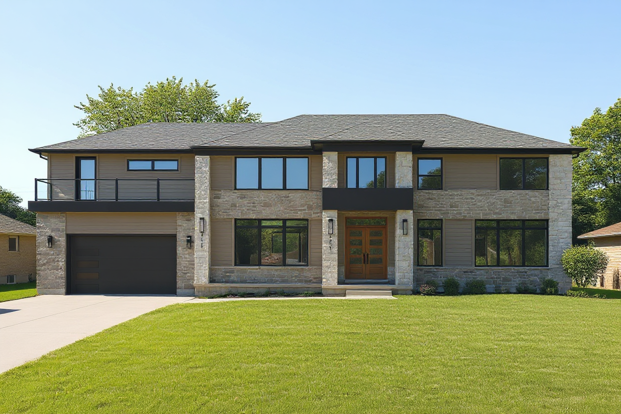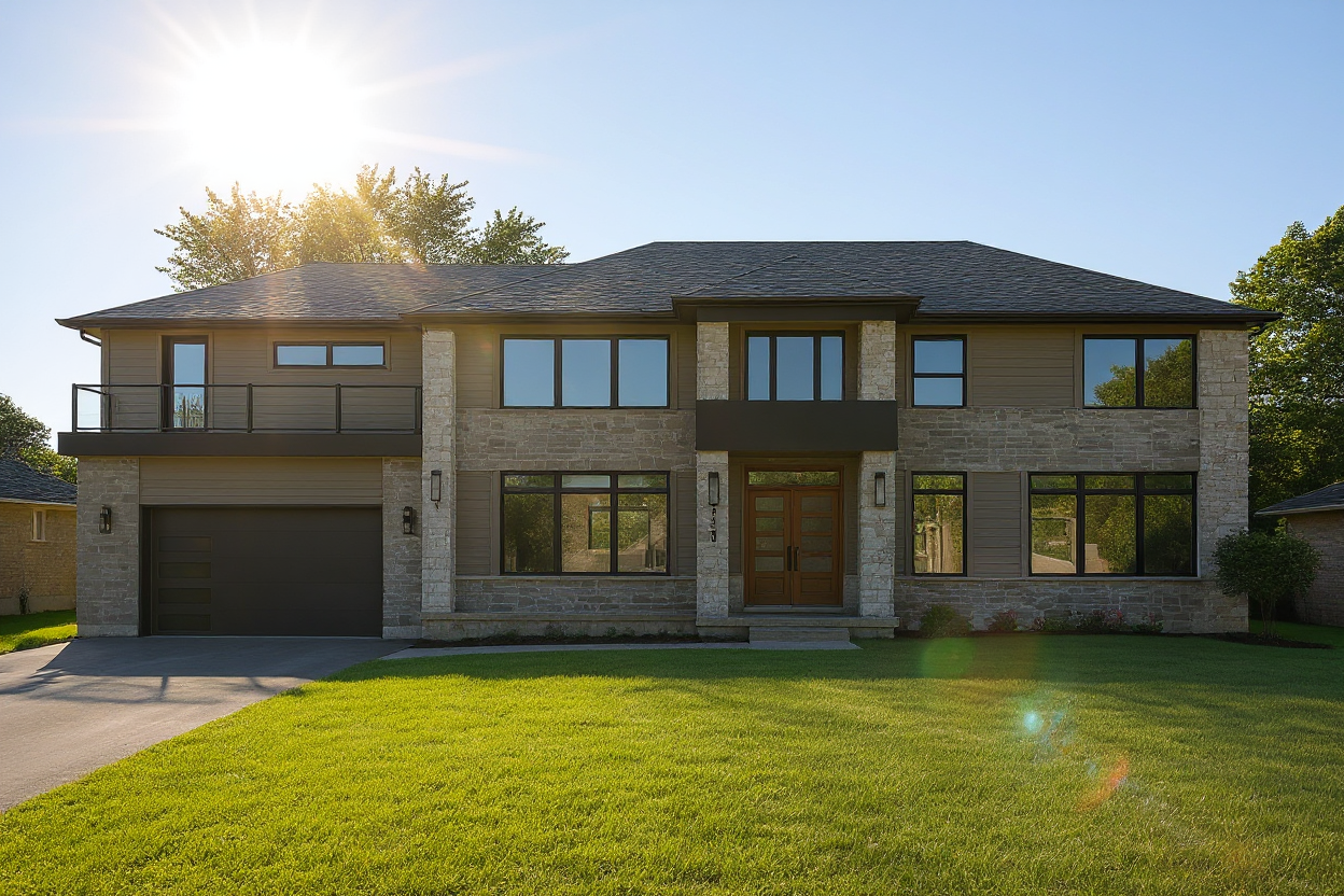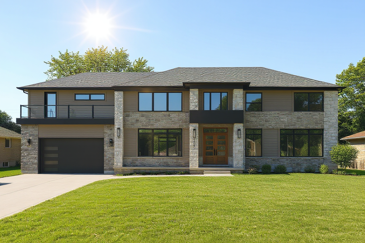 replace driveway by concrete only put more sun to the elevetion dont change the original geomrty add more direct sun dont show the sun rotate sun to other side