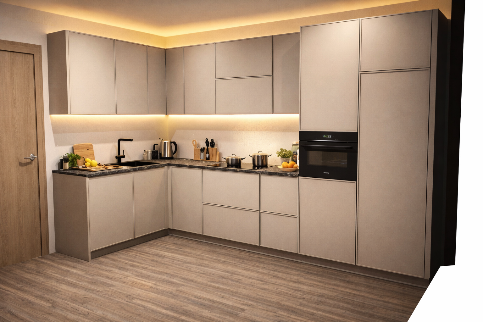 cocina con muebles color cashmere satinado encimera m rmol blanco conserva la modulaci n sin tocar nada