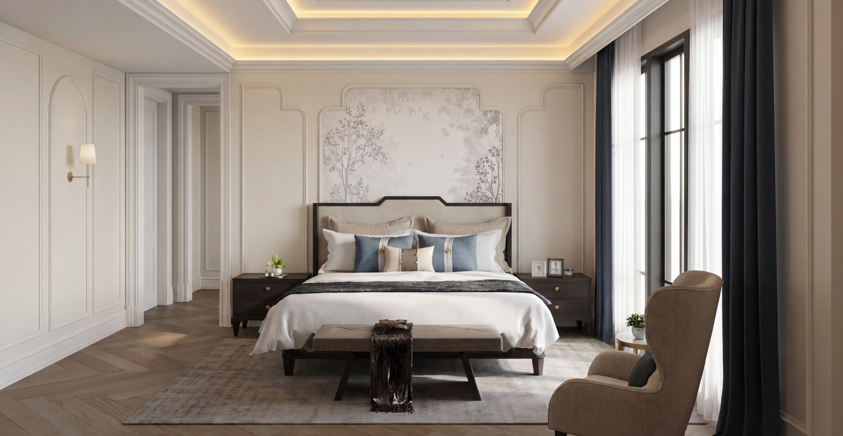 use the uploaded inspiration images for material color and styling reference only do not change the floor plan layout or structure in any way do not move walls doors windows plumbing or fixtures do not resize or reposition the shower tub vanities or toilet keep the exact current layout and architectural structure apply the design style from the inspiration images to finishes only including tile style and placement cabinetry style and color lighting fixtures hardware finishes textures and materials maintain all existing elements in their current positions focus on creating a cohesive warm elevated bathroom design inspired by the reference images