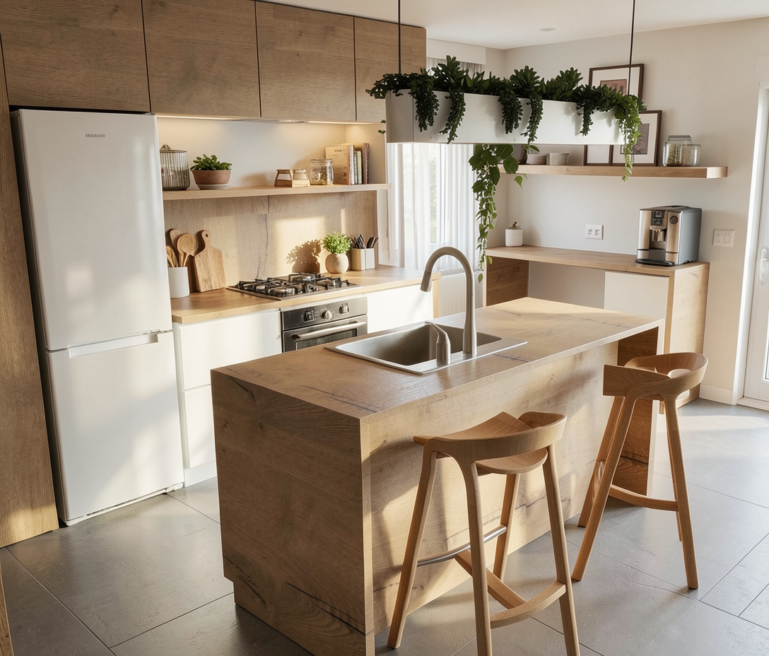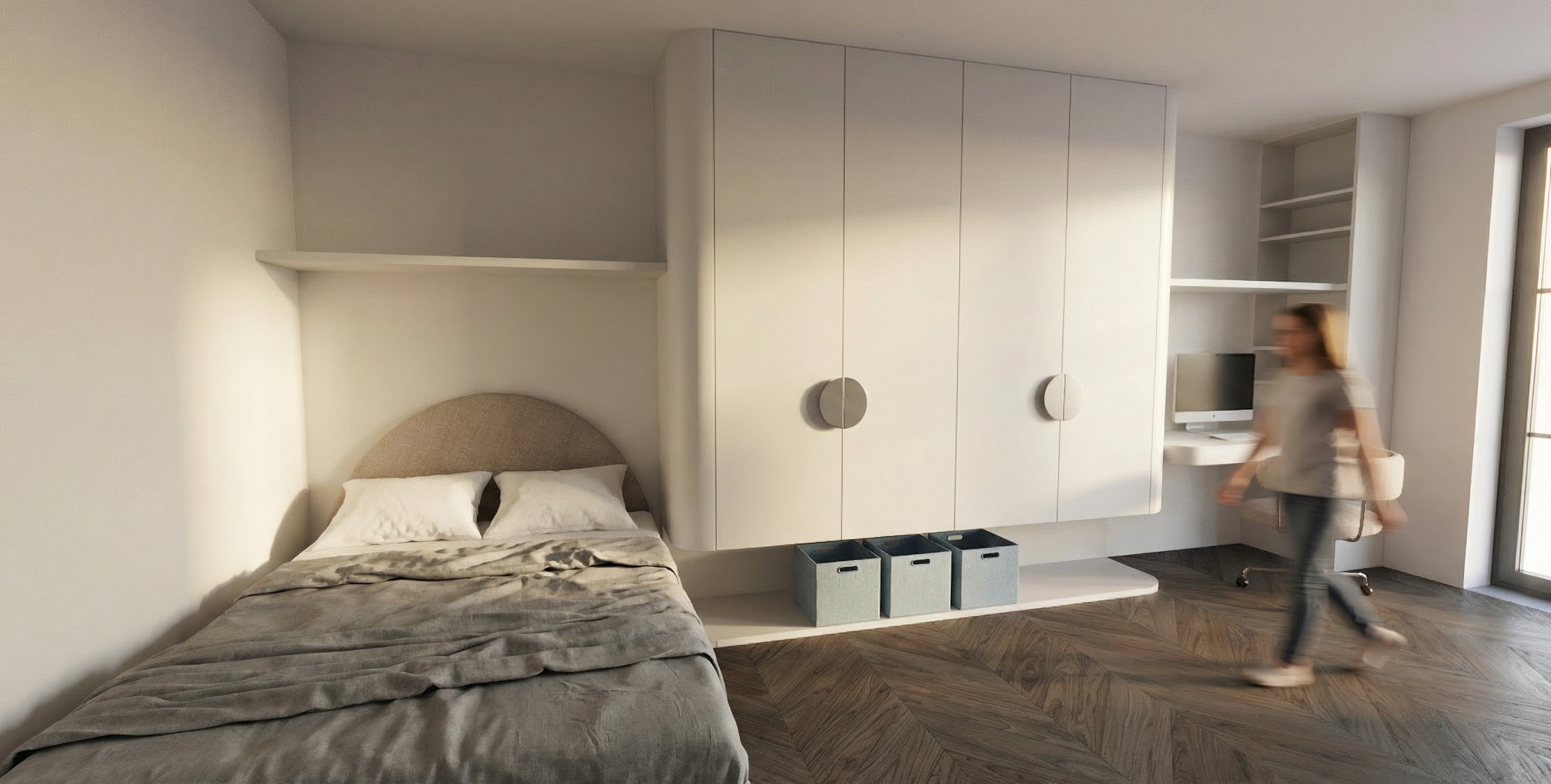 add a led light dimmed and in the color k4000 shining from the bottom of both of the shelves