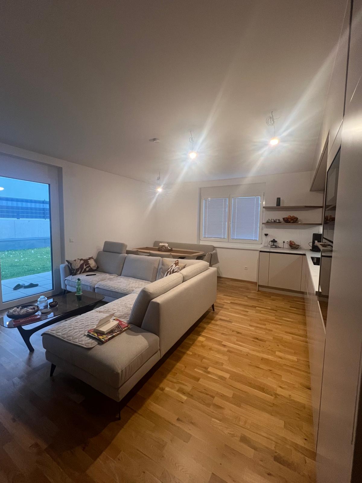 can you make a rendering our of this image keeping everything as it is but adding flowy linnen curtains over windows and patio doors and painting the walls in a very light creme color