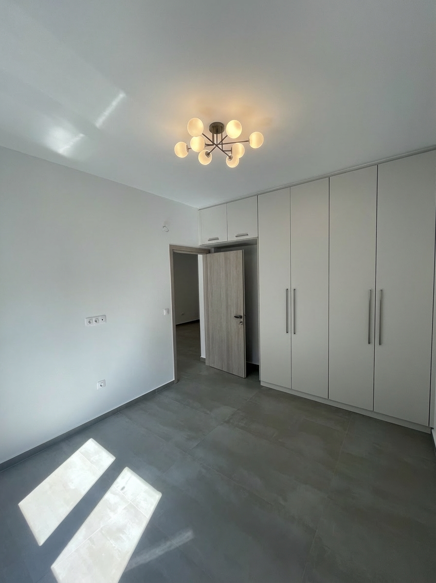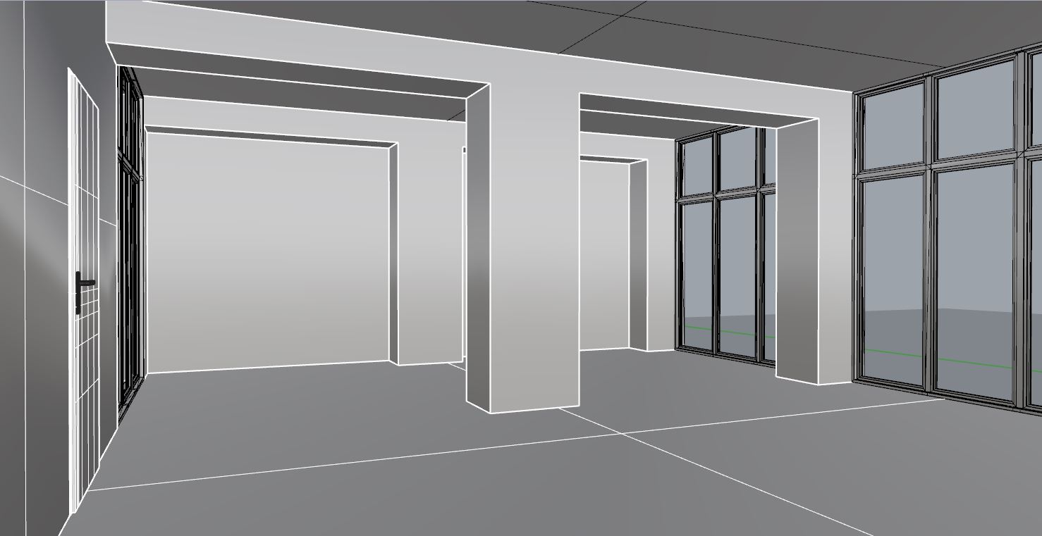 fresh modern bistro interior designed purely as a seating area for approximately 40 50 guests use the provided reference image as the base spatial layout and proportions the atmosphere should feel welcoming fresh contemporary and relaxed walls are primarily clean white plaster one feature wall can use decorative concrete plaster for subtle texture and contrast flooring made of terrazzo ceramic tiles in light natural tones interior palette should stay soft and natural with accents of green seating composed of comfortable upholstered dining chairs combined with small round and rectangular tables arranged naturally across the space include one semi private seating box for approximately 6 8 people designed as a more intimate zone separated by light spatial elements such as wooden slats textile panels or integrated greenery keeping the space visually open but more private lighting design should combine multiple layers modern pendant lights above tables ambient wall lighting soft indirect lighting and decorative lighting elements to create a warm caf atmosphere mirrors can be used subtly on structural columns or selected wall sections to visually enlarge the space and reflect light materials should include natural textures such as light oak wood soft fabrics terrazzo flooring and subtle greenery such as indoor plants the space is intended only for seating and social dining no bar counter should be present style contemporary european bistro scandinavian inspired modern interior warm minimalism elegant but relaxed hospitality design photorealistic architectural interior rendering soft daylight combined with warm ambient lighting wide angle interior view