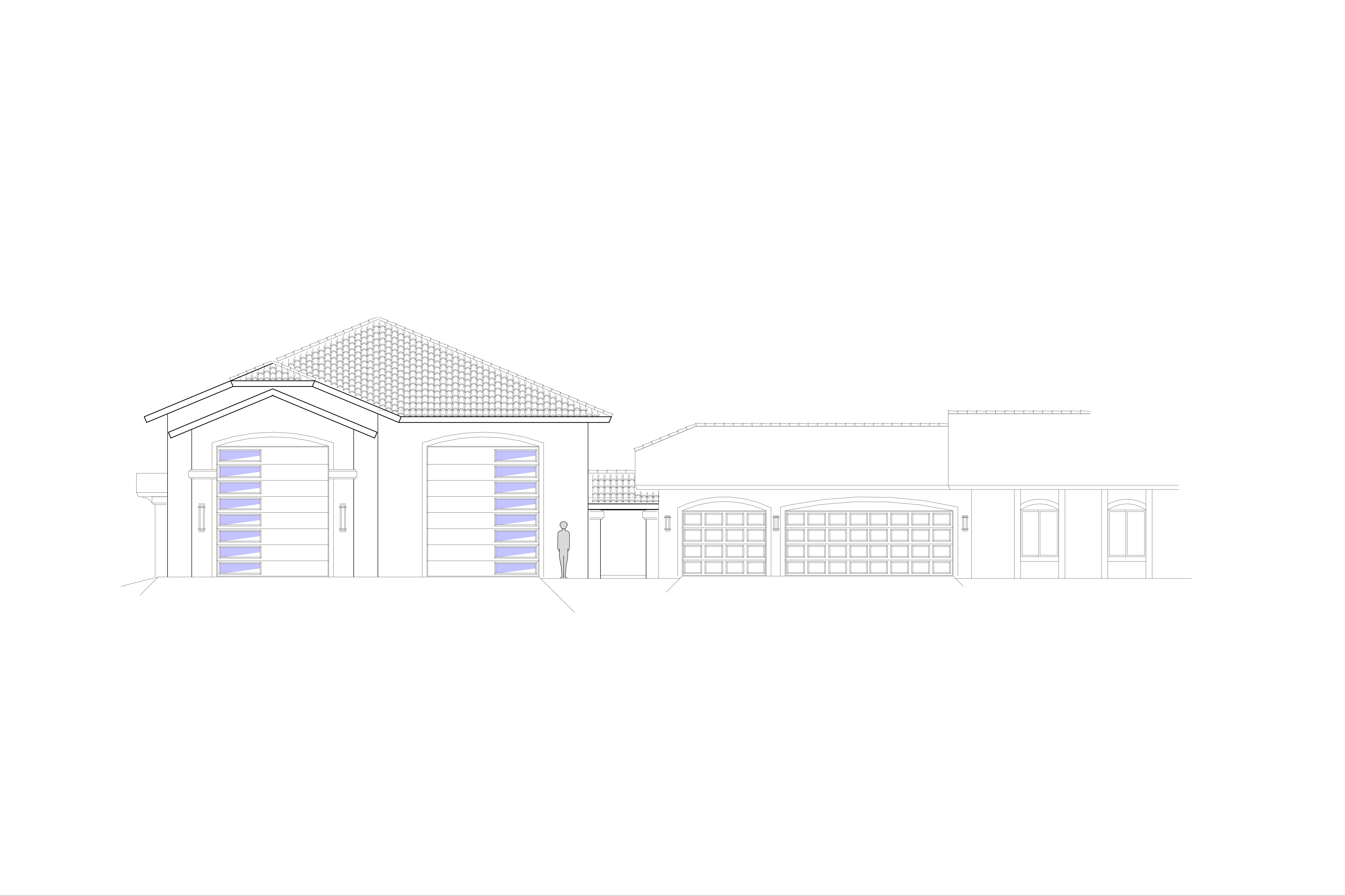 bronze tile roof white walls tropical landscaping paver drive to edge of the road grass yard
