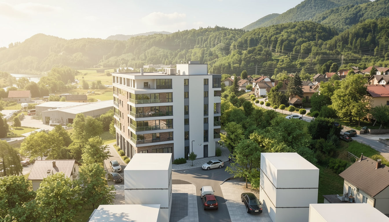 dont make changes to the model a photorealistic 8k interior rendering of an open plan dining room and kitchen based on a structural layout sketch featuring a charcoal grey marble dining table with mid century modern wooden chairs upholstered in light beige fabric in the background a minimalist l shaped kitchen includes light oak toned cabinetry and a white marble backsplash with grey veining while the left wall features a white marble tv panel all door frames and window mullions are finished in matte black contrasting with large format polished white floor tiles and a clean white ceiling that utilizes integrated warm led cove lighting along the perimeter the space is filled with natural soft morning light to create an airy and serene atmosphere highlighting ultra detailed textures realistic reflections on stone surfaces and cinematic lighting in an unreal engine 5 architectural visualization style