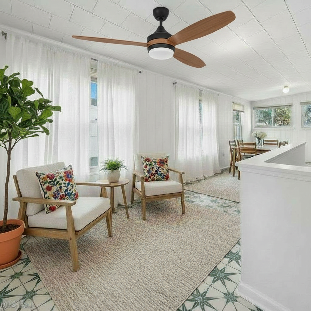 interior view matte concrete floors wood ceiling matte black steel framing weathered wood accent wall