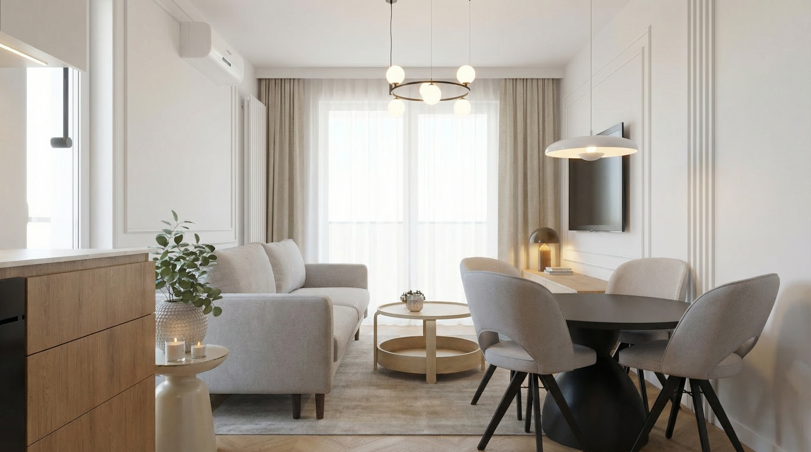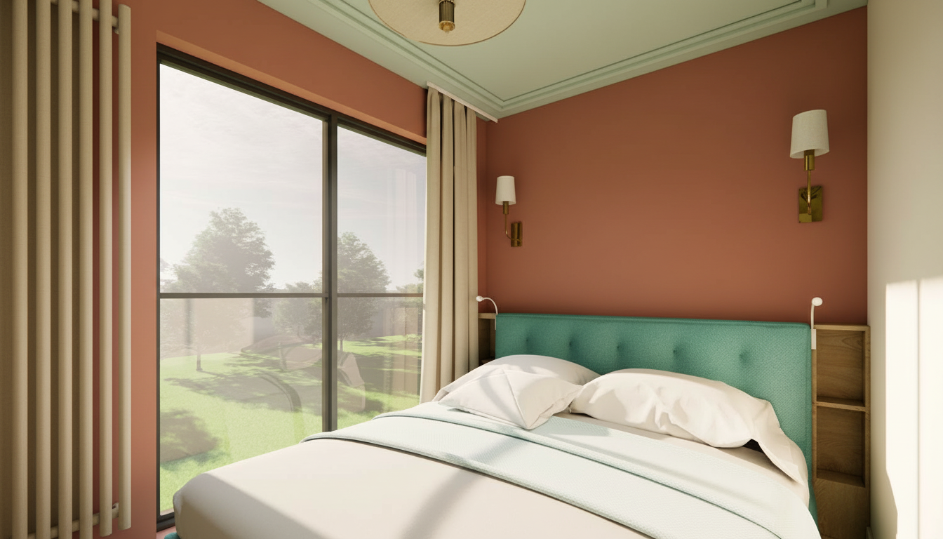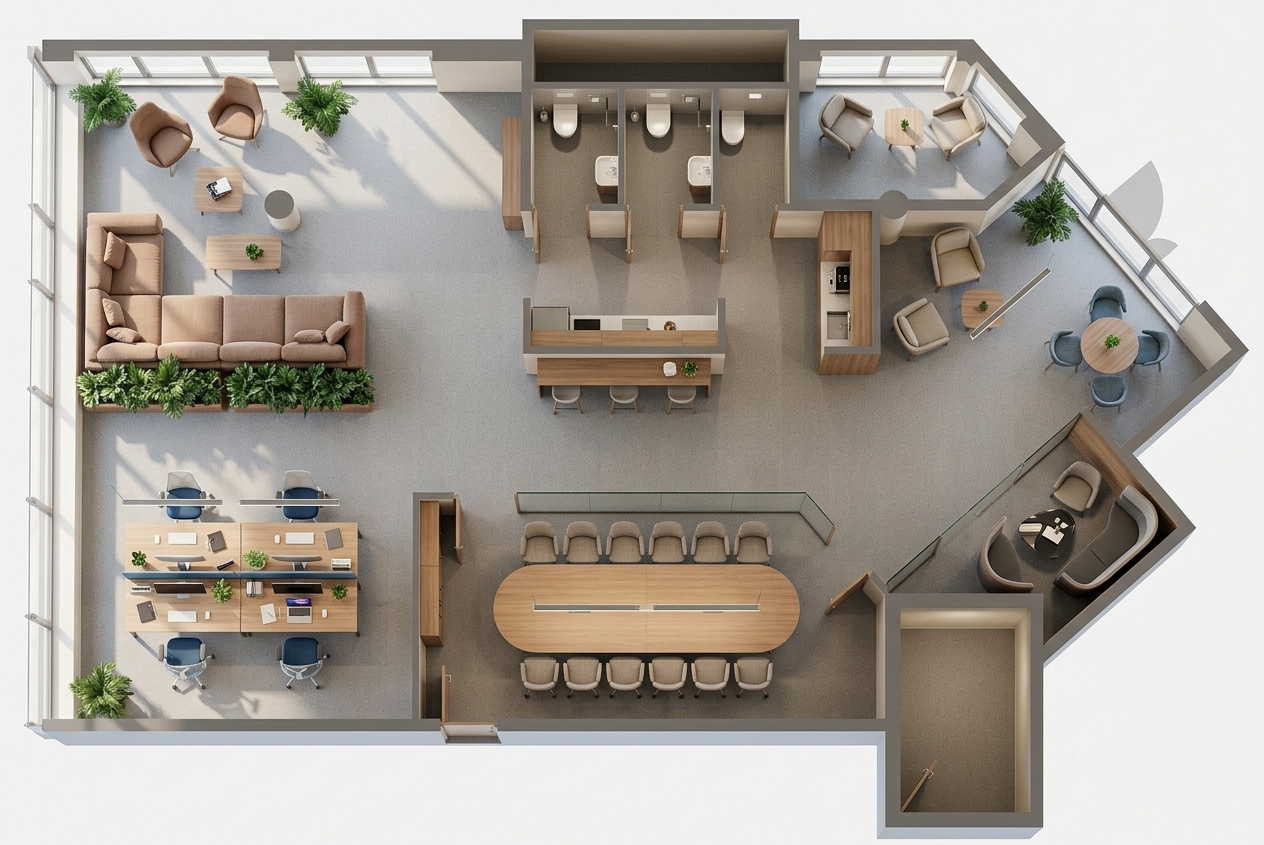 interior rendering of a ceramics supply store in cape town based strictly on the provided 3d model geometry do not change layout or proportions scene description match model exactly view from inside the store looking towards the shelving wall flooring muted wooden vinyl flooring running along the long side of the space left side full height terracotta brick lattice wall in front stacked rectangular clay bricks on the floor center two display plinths base gabion baskets made of metal mesh filled with stones middle open plywood box shelf top thick natural stone slab back wall long continuous shelving unit lower section plywood drawers upper section recessed niches inside niches slanted shelves made of galvanized steel shelves display ceramic glaze tiles above shelving soft linen textile panels hanging to the ceiling slightly irregular off white right side pos counter with curved front base gabion basket filled with stones top clean plywood countertop wall mounted shelves behind pos far right seating nook built in plywood bench with solid ash seating surface small chair coffe table with a stone slab as a table top ceiling exposed track lighting system running longitudinally left side clay brick wall with wooden pegs inserted generating space for displaying tools and objects suspended from the pegs materials very important make materials realistic and tactile plywood light visible grain matte finish solid ash wood slightly warmer tone than plywood galvanized steel shelves slightly reflective industrial finish gabion baskets metal mesh with irregular natural stones inside terracotta bricks warm slightly rough texture stone slabs heavy natural slightly uneven edges linen fabric soft slightly translucent subtle folds ceramic tiles varied glaze finishes glossy matte textured avoid plastic or overly clean surfaces lighting only from the track lighting track lighting with spots on the shelving units and plinth highlighting shelving wall soft shadows atmosphere calm tactile craft oriented space slightly raw not overly polished balance between workshop and gallery emphasize material contrast rendering style ultra realistic architectural interior rendering high detail global illumination natural materials soft shadows no people no clutter clean but not sterile