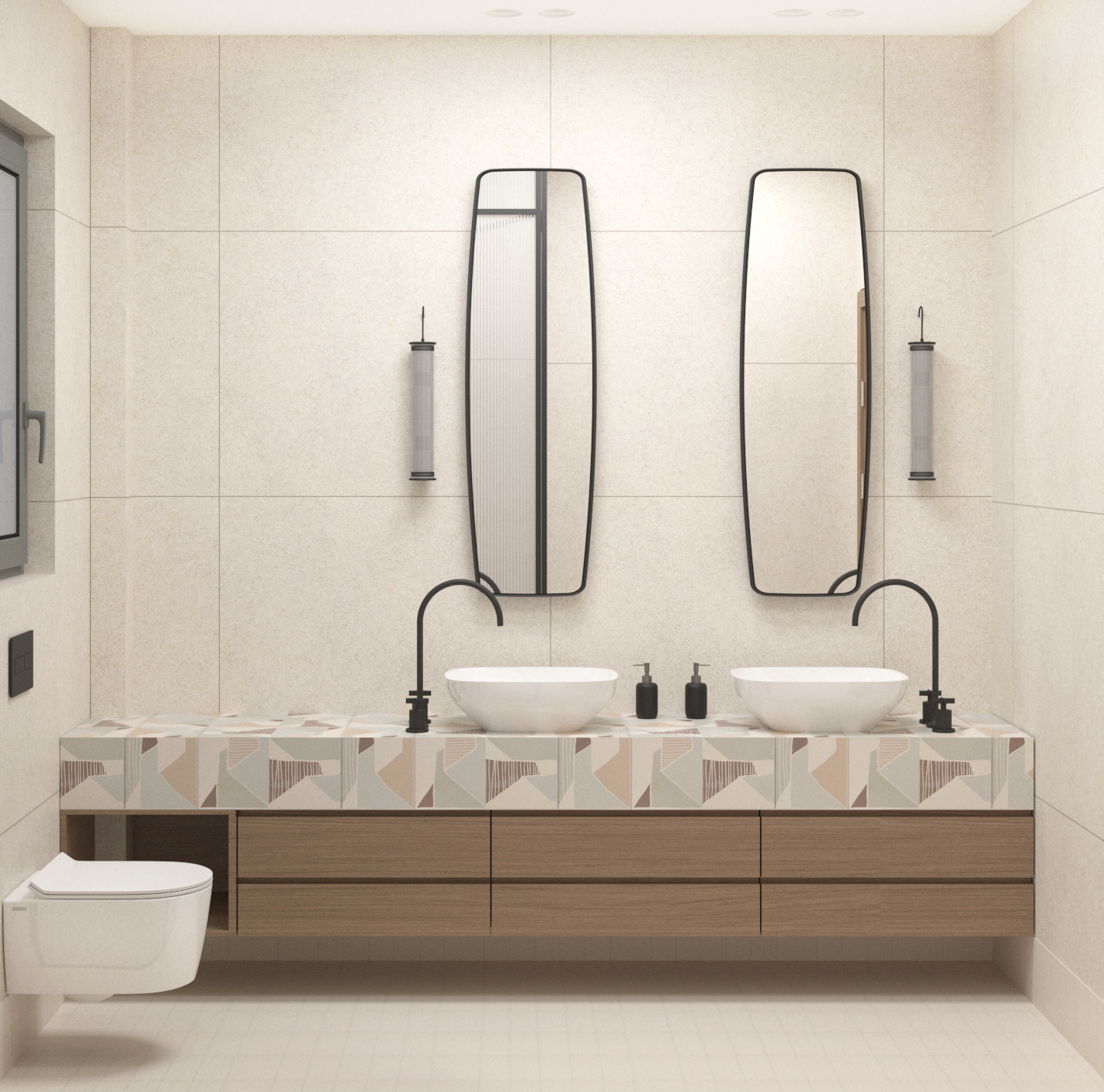 realistic render warm tones natural light brushed brown metal frames light from the wall lights