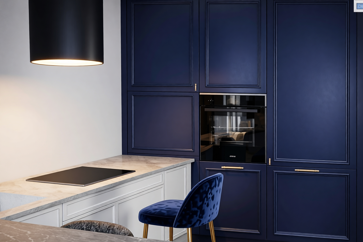 exterior shot rustic cabinetry wood floors patina copper range hood material moody