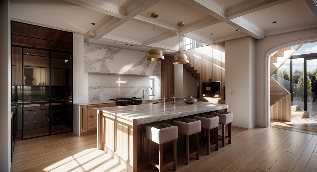 architectural feature warmth wood floor herringbone floor fluted marble fluted chair rail and moldings reeded cabinet doors