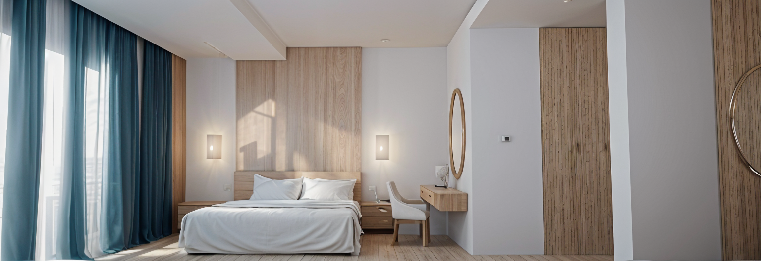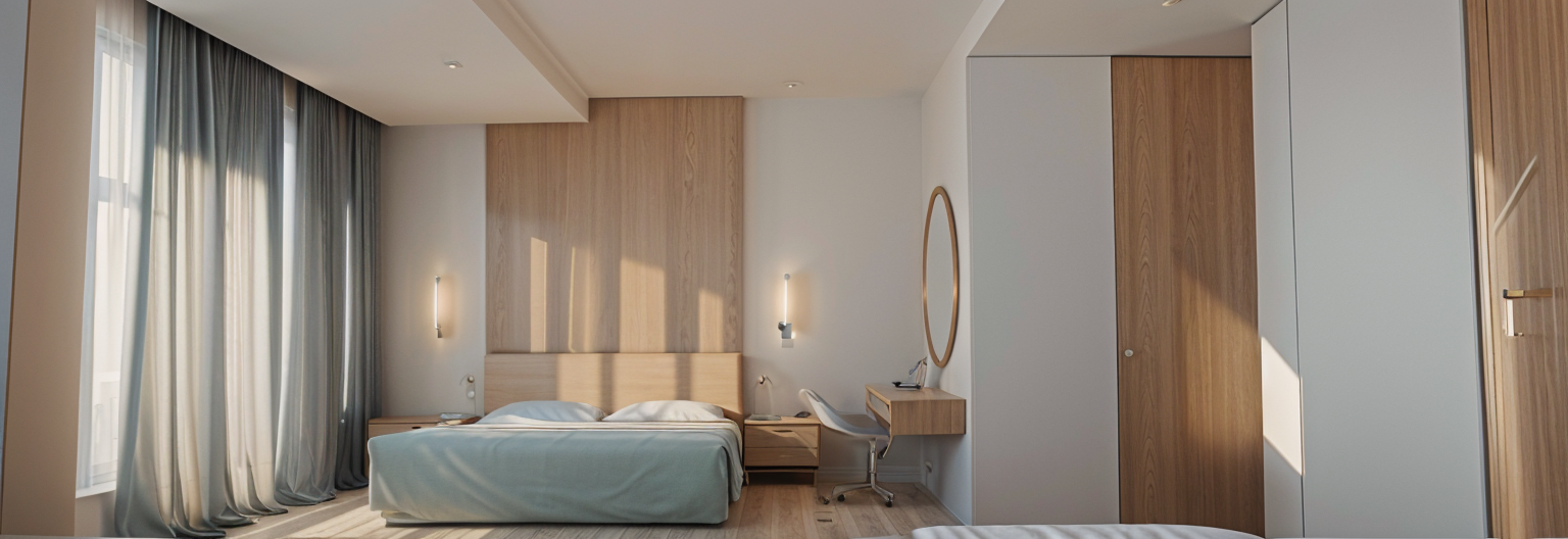 modernist interior shot create an interior room 3d rendering using the items pictured in this moodboard use the oak floor sample for the flooring maintain the colors that are used in the original mood board architecture