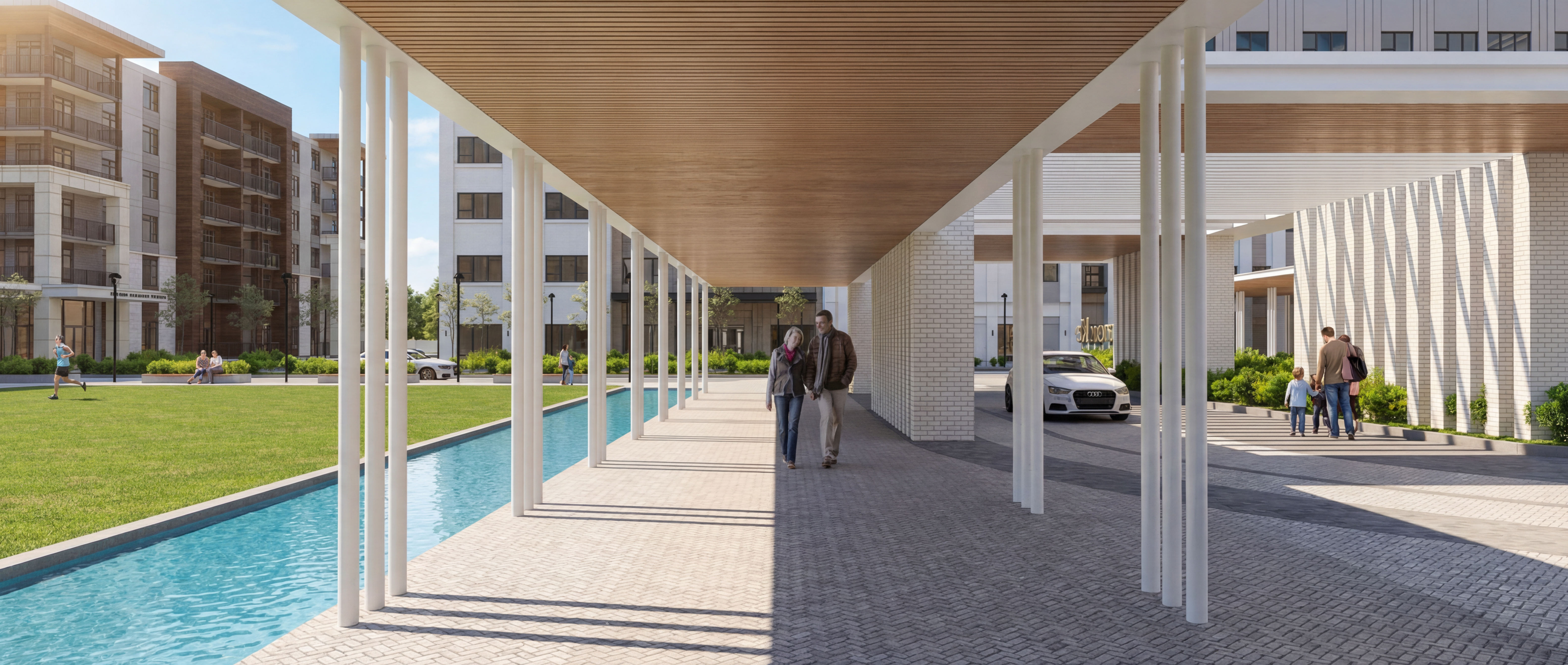please make this more realistic the trees should be deciduous instead of pine trees make the driveway curve to the right so it doesn t look like a road