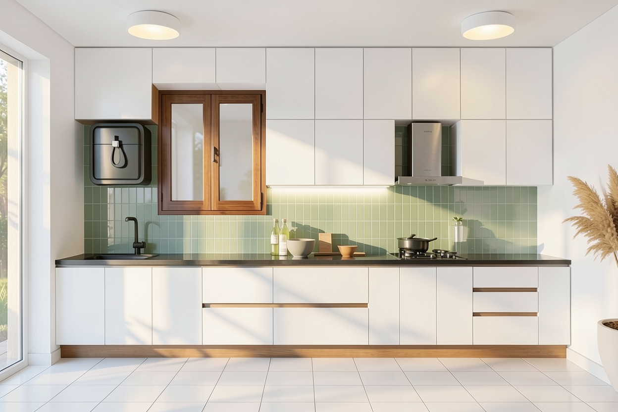 create a realistic render showing red brick georgian style houses nestled behind a hedgerow with a view out into the woodland behind