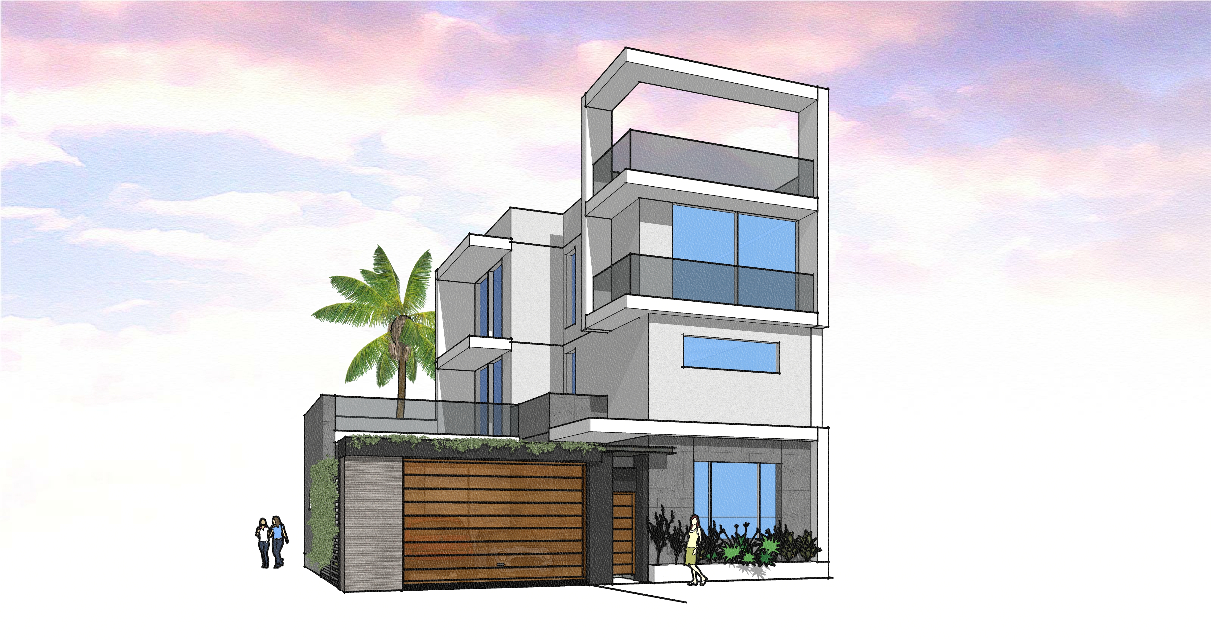 big bjarke ingels group exterior shot a modern residential house facing a street clean white facade architecture