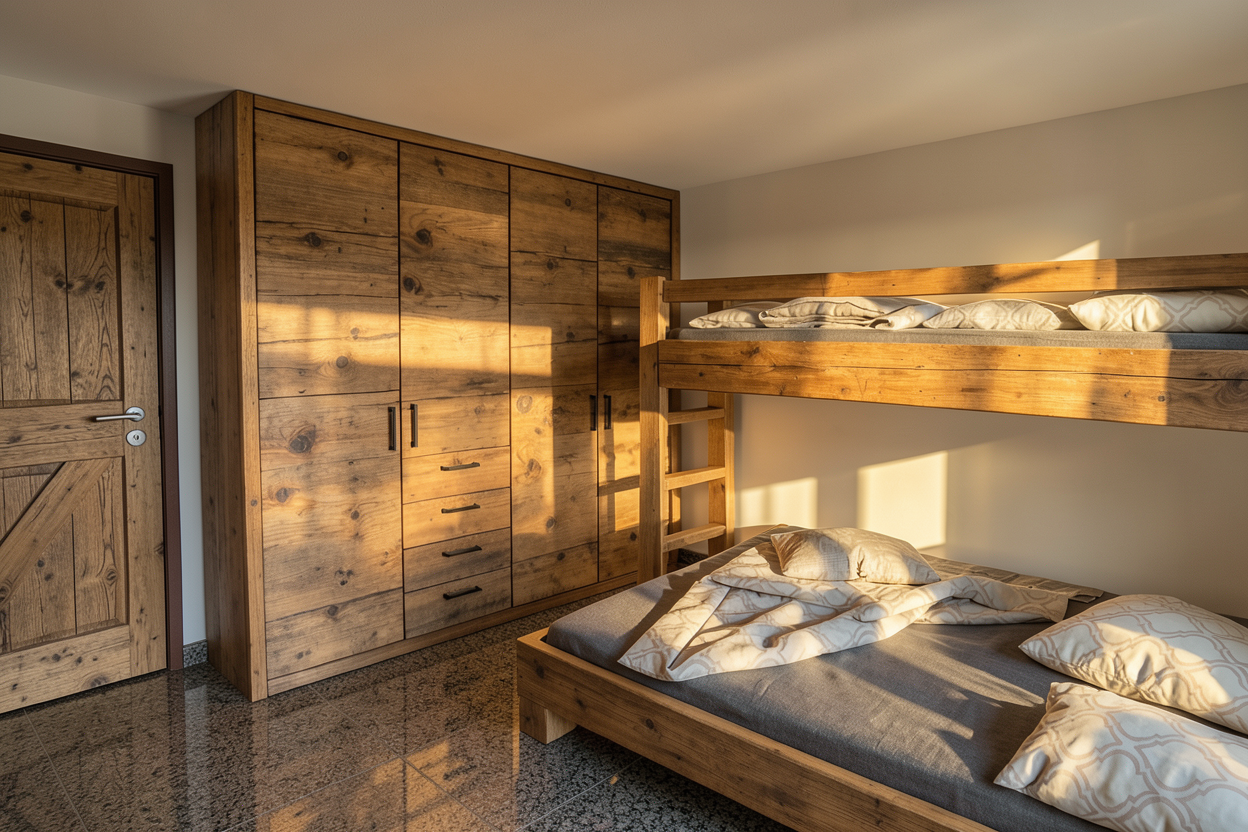 fotorealistisches innenraum foto exakt dieselbe perspektive und kameraposition wie das hochgeladene referenzbild 100 identische raumgeometrie exakt gleiche m belanordnung kein fenster weiches nat rliches tageslicht leicht schr g einfallende sonne sanfte realistische schatten realistische materialien echte holztexturen stoff mit leichten gebrauchsspuren fenster in holz das t rblatt ist in altholz der t rrahmen dunkelbraun alle m bel in altholz hochwertige oberfl chenreflexionen boden ersetzen mit platten 80x80cm granite grey very matte surface canon eos r5 35 mm festbrennweite f 2 8 nat rliche farbwiedergabe leicht warme farbstimmung golden hour feeling hyperrealistisch dslr qualit t raw aufnahme 8k aufl sung extrem scharf perfekte tiefensch rfe professionelle architekturfotografie