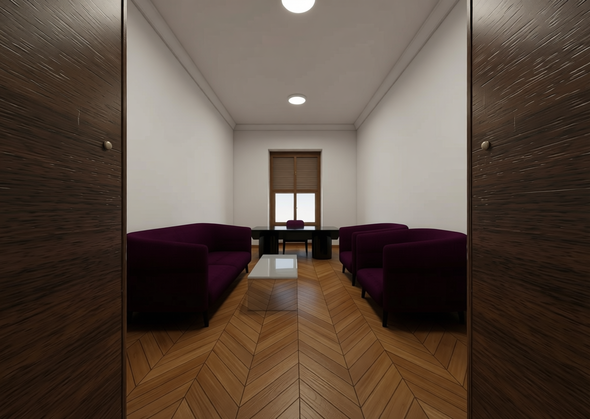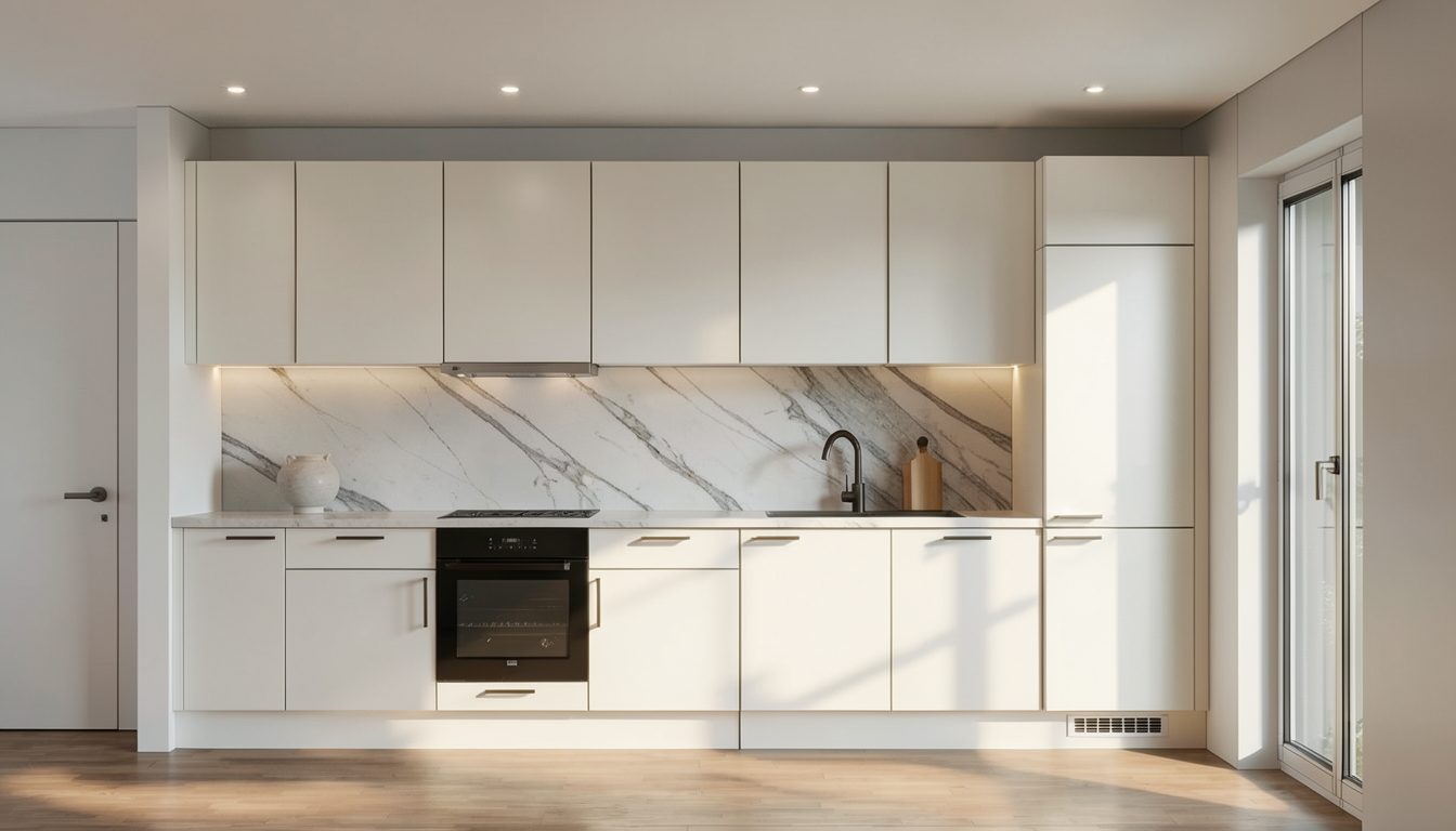 realistic garden with warm natural daylight realistic background with modern houses hedge between neighbours keep colors textures and proportions sun at terrace middle grey tiles driveway with grass pavers behind wooden wall big garden right