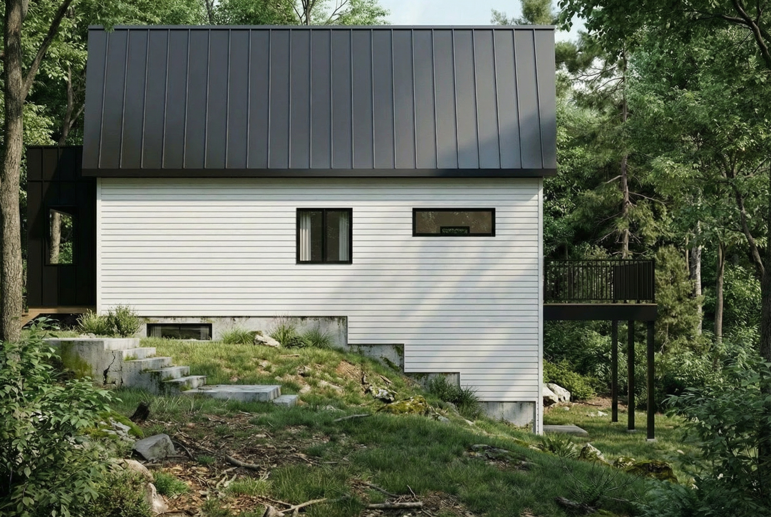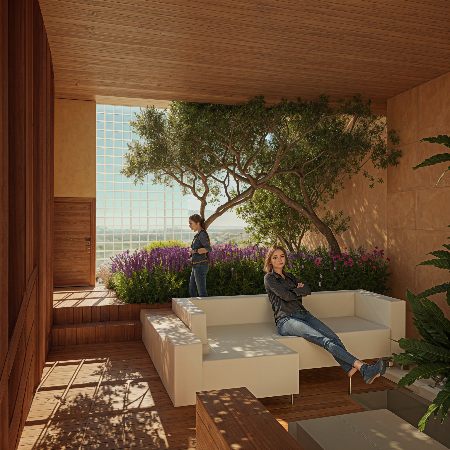 el muro blanco que hay al llado del sofa blanco hazlo de madera como el muro bajo que se ve en la parte central inferior de la foto