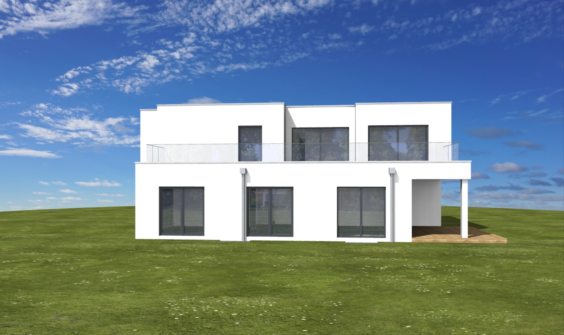 mache eine moderne realistische visualisierung von dem haus an den grenzen hecke