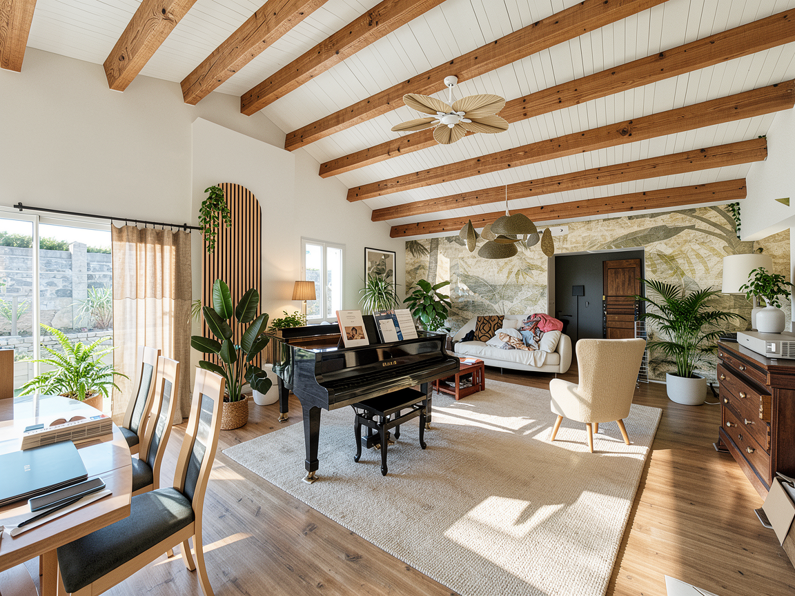convert this architectural floor plan into a high end photorealistic 3d interior visualization transform the layout into a fully furnished apartment with a modern inviting atmosphere use realistic textures such as polished hardwood floors soft textiles and ambient warm lighting ensure natural sunlight enters through windows to create realistic shadows and depth the style should be contemporary and clean featuring high quality furniture indoor plants and tasteful decor that aligns with the structural walls and openings ultra detailed 8k resolution cinematic lighting architectural photography style