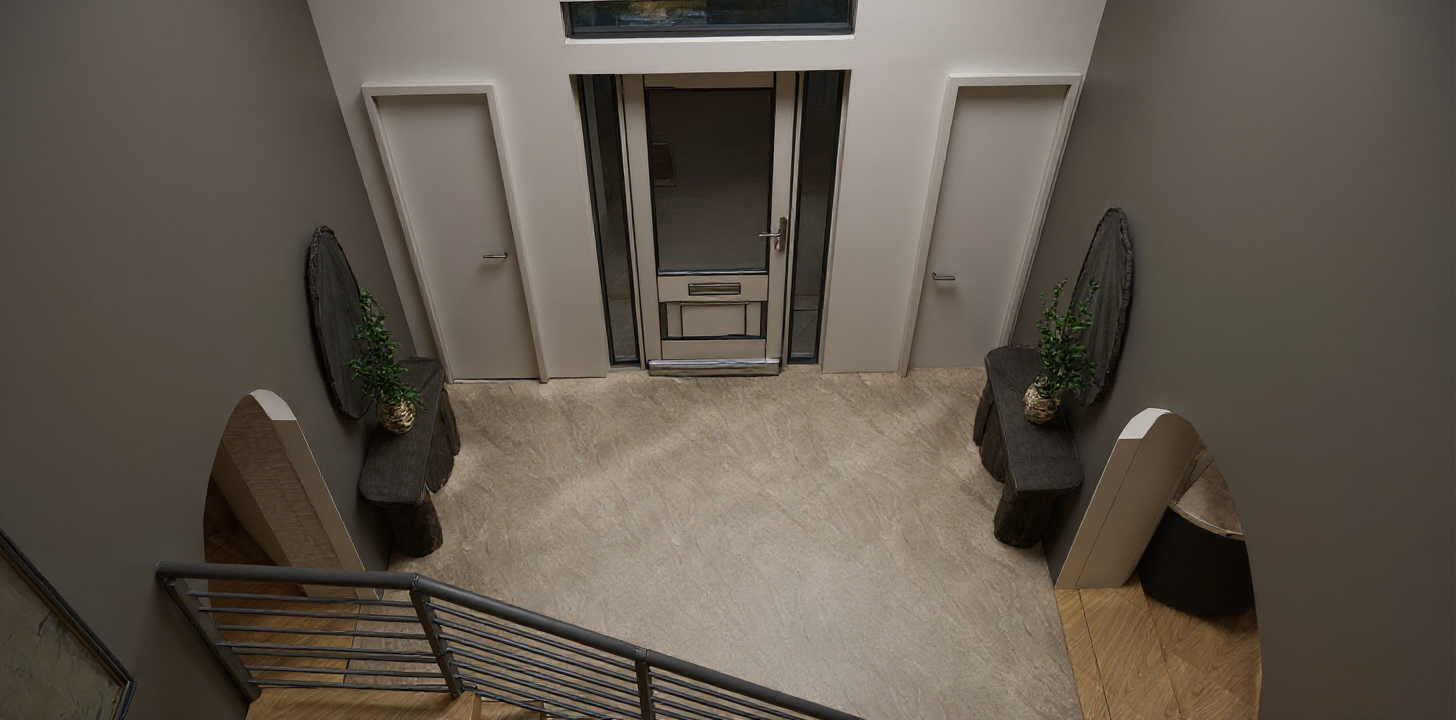 keep colors exactly the same stairs are wood and floors are travertine tile
