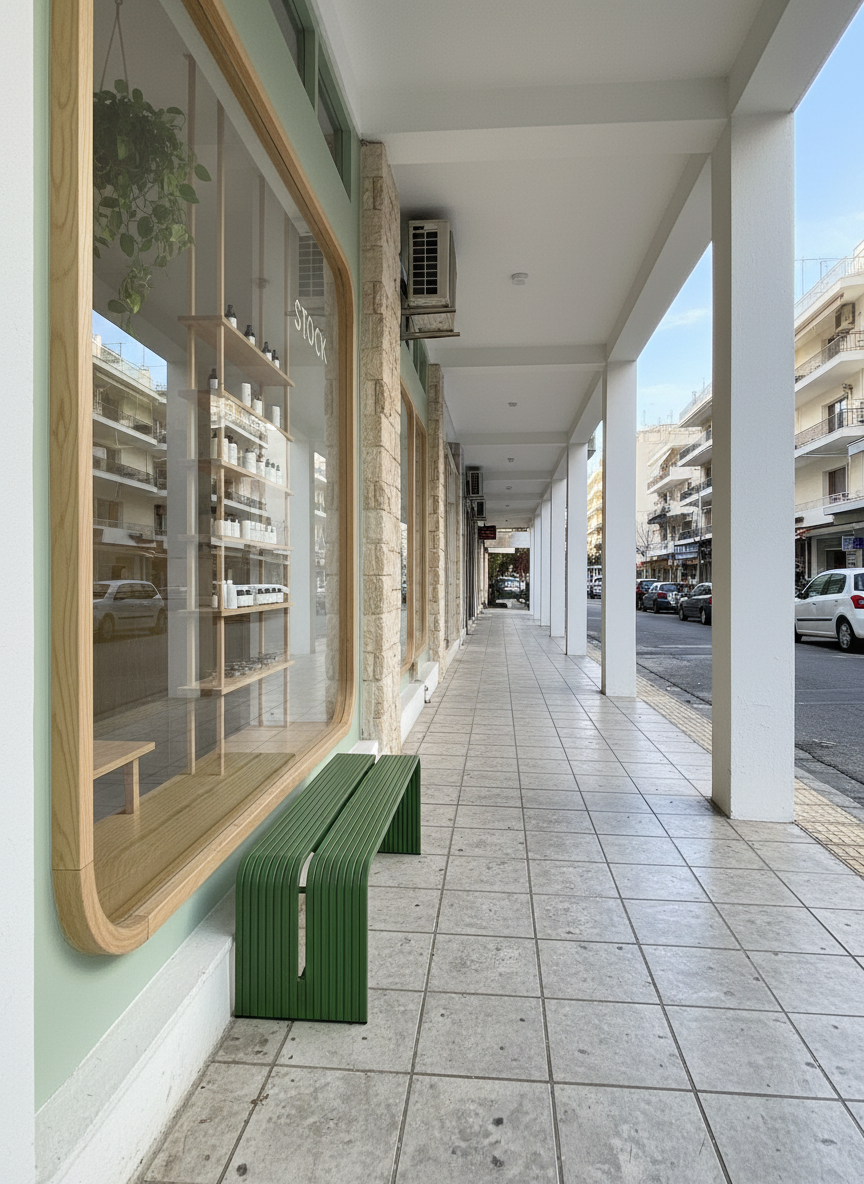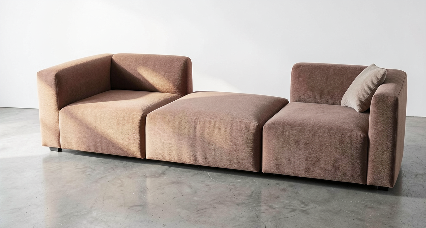 place a bench behind the round suspended fireplace place the fire in the fireplace the curved bench is placed 70 cm from the fireplace and is round in shape complete the tv cabinet on the left at the same height as the bench seat the tv is hanging on the wall