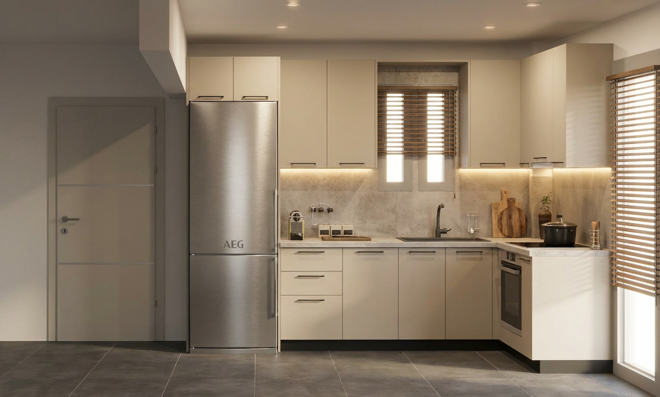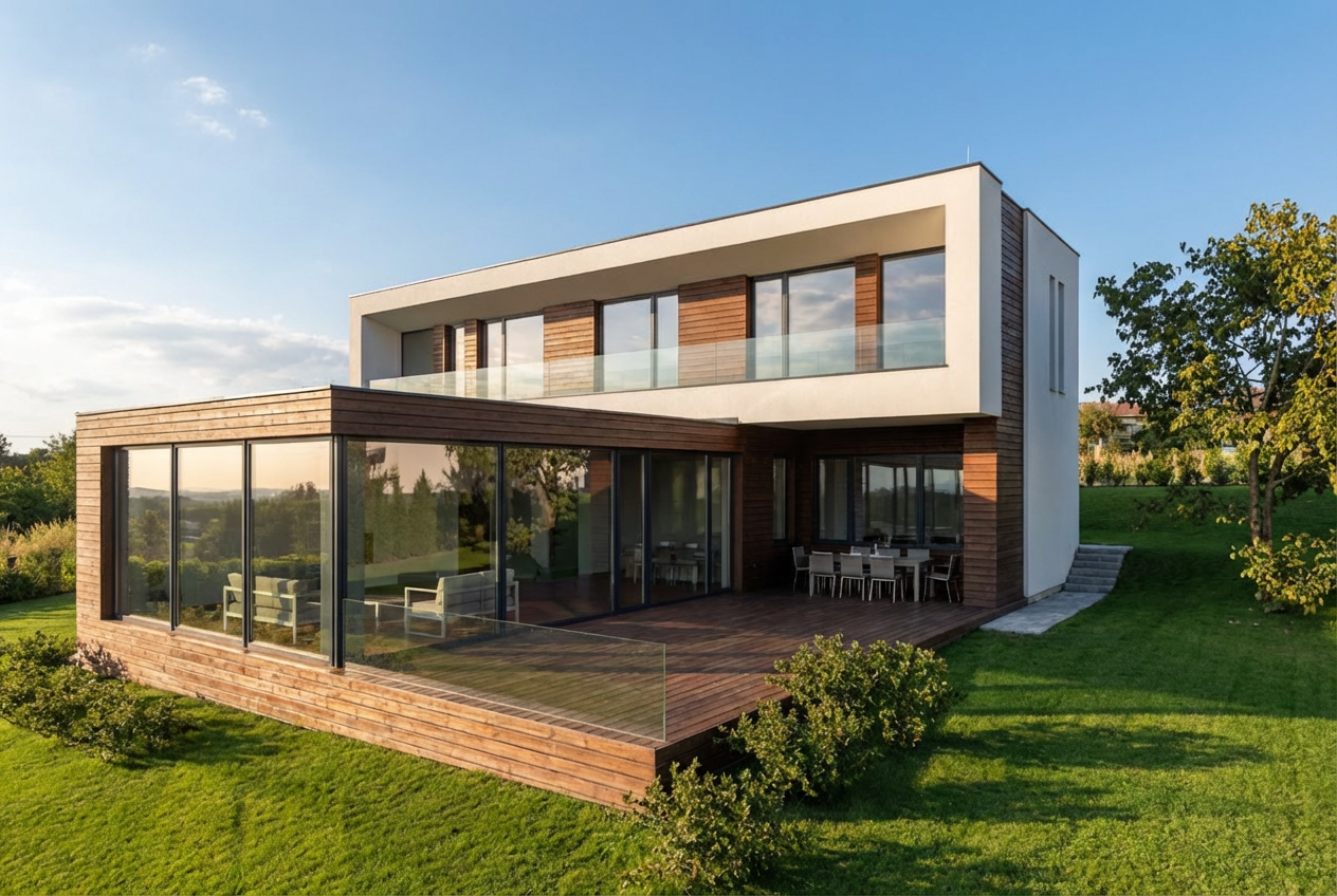 exterior shot apply the mood board into the interior with luxury modern style remove the pendant lamps