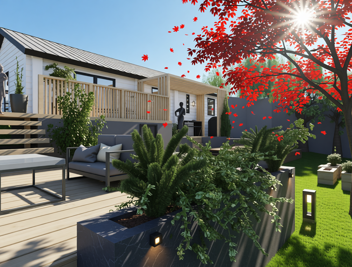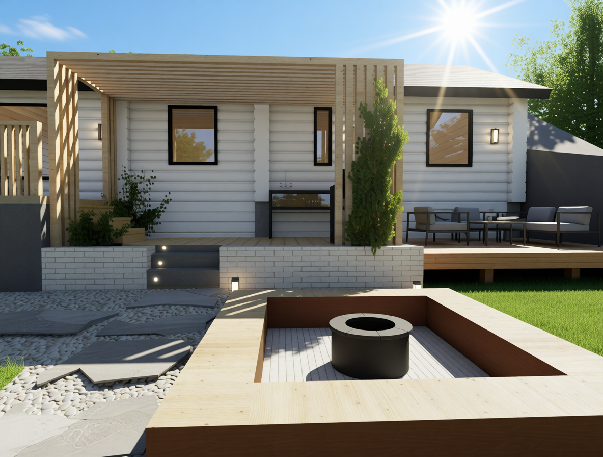 generate a realistic image of a modern cabin sunny weather