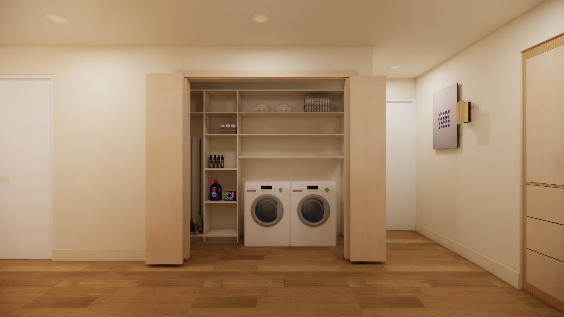 create a realistic render of this image maintain all colors and materials baseboard and walls same color
