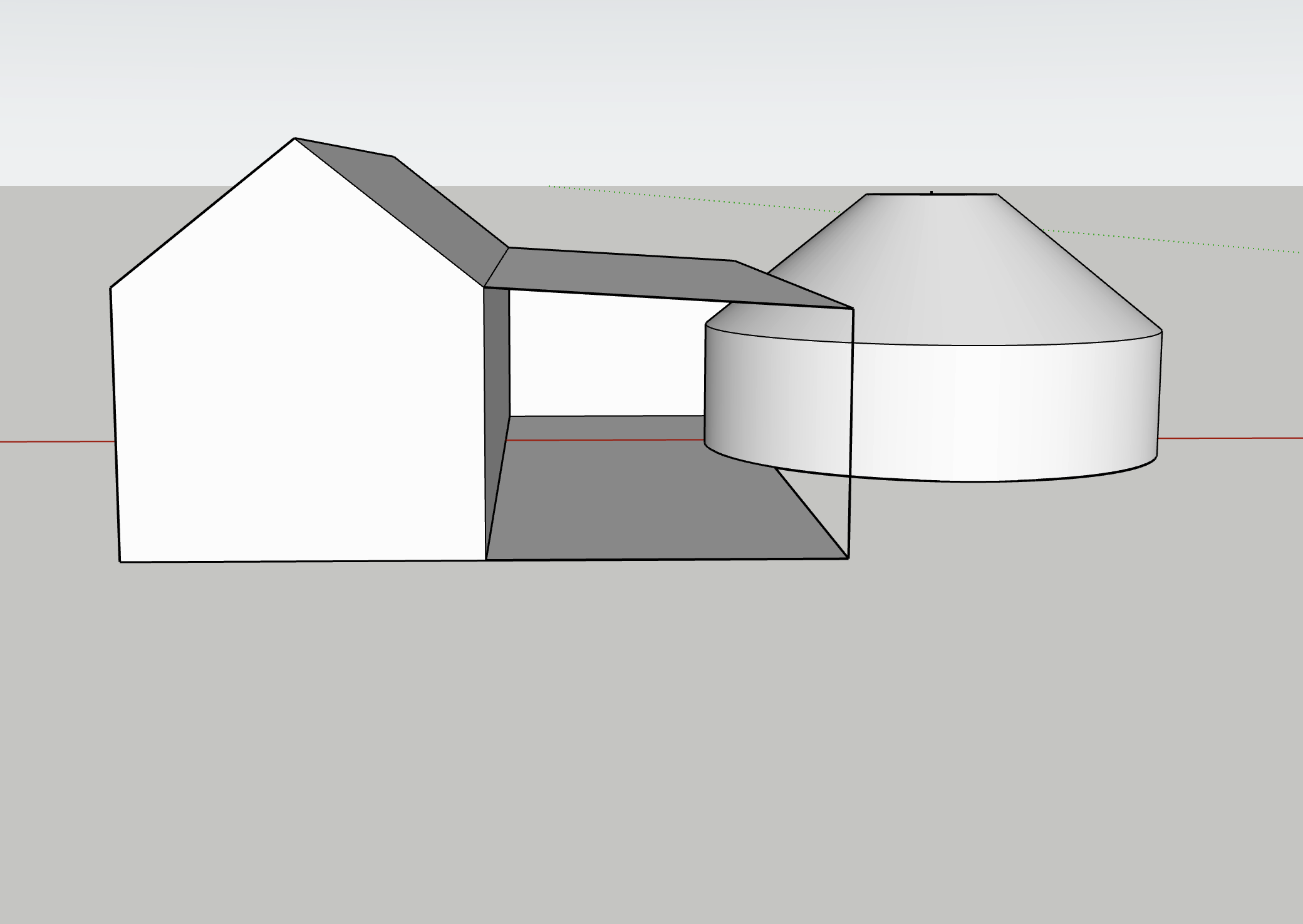 render this 7m yurt that connects to the 12x4m tiny house add timber windows and doors keep the preportiond the same as they are accurate give the tiny house a modern architectural look blending dark metal corrugated cladding with australian hardwood the yurt will have beige pvc claddding with australian hardwood windows and door make the front door a double with full glass panel extend the deck beyound the lean to roof to connect the yurt and the tiny home make this curved add a back wall to the lean to roof and flyscreen walls on the side and front