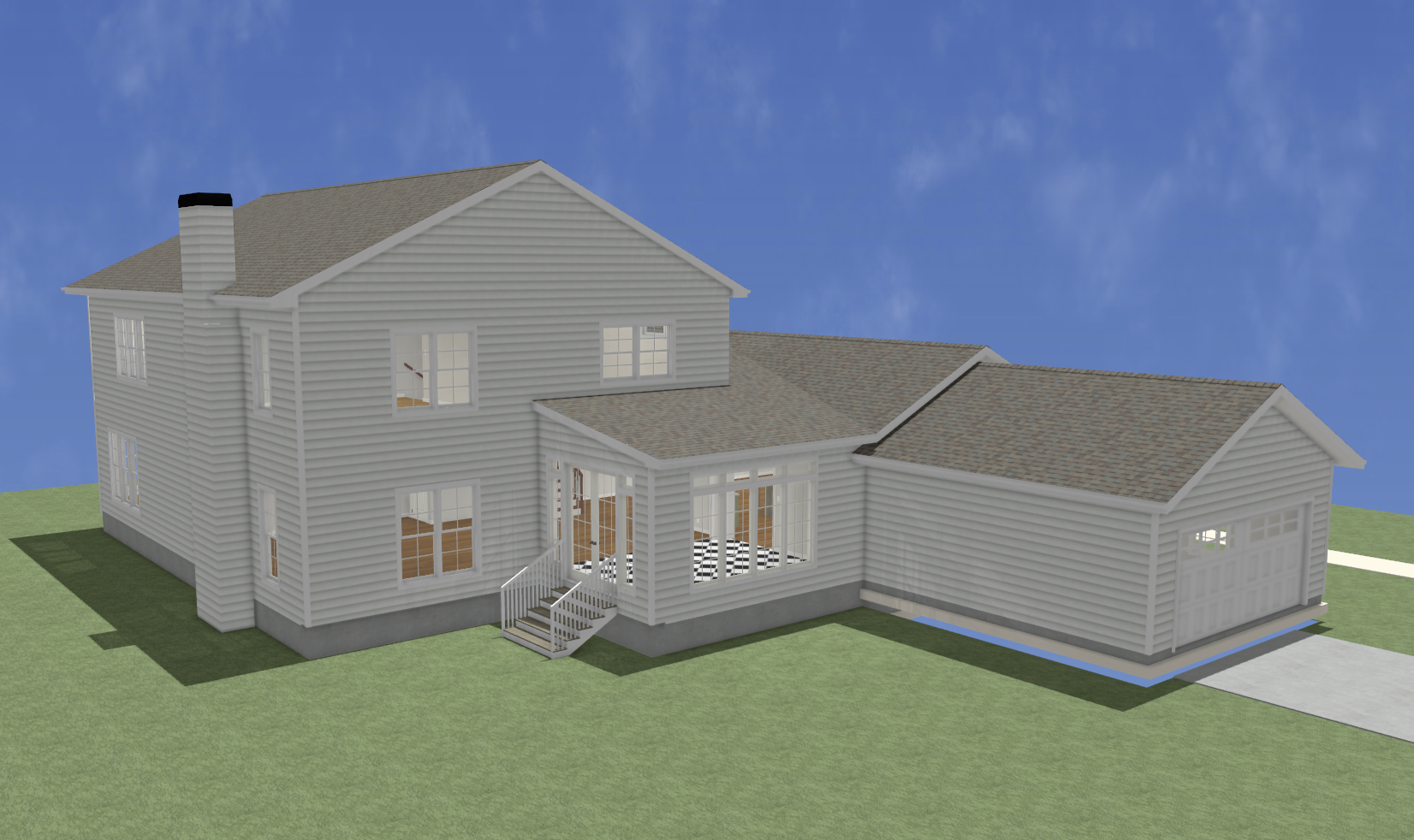 put this house in a lightly wooded area in a flat north georgia neighborhood make the house an off white
