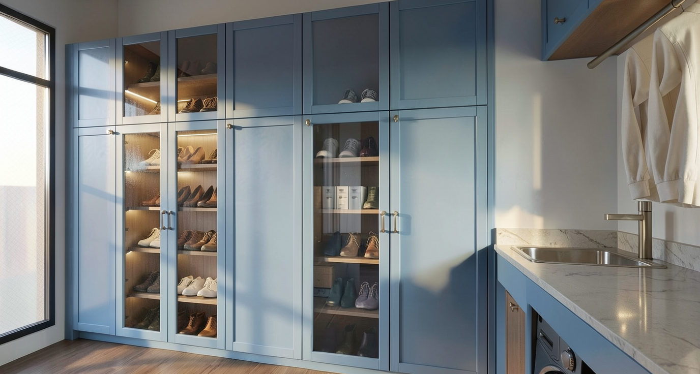 blossoming spring clear sky change dark grey facade to vertical oak wood planks add interiors light up