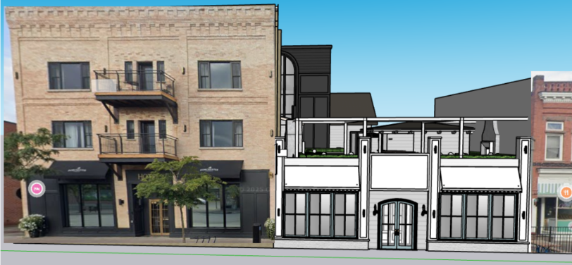 use the provided street elevation image as the base composition transform the rendering into a soft architectural watercolor illustration style similar to a hand painted architectural presentation rendering maintain the exact building proportions windows doors fa ade details balconies and storefront layout from the original image style the scene like a high end architectural watercolor concept illustration with the following characteristics soft watercolor washes light ink linework outlining architectural details warm natural tones sand stone soft blacks muted greens loose painterly landscaping and trees subtle shadows and atmospheric depth hand painted sky wash soft edges rather than hard 3d rendering lines add loose landscape elements like small flowering gardens along the sidewalk soft watercolor trees natural grass textures a few sketched pedestrians for scale lighting should feel warm calm and natural like a concept presentation drawing from an architecture studio the final image should look like an elegant watercolor architectural illustration used in a design proposal board style references architectural watercolor rendering hand painted architecture illustration studio concept presentation rendering soft ink watercolor architectural drawing aspect ratio wide street elevation quality high detail but painterly