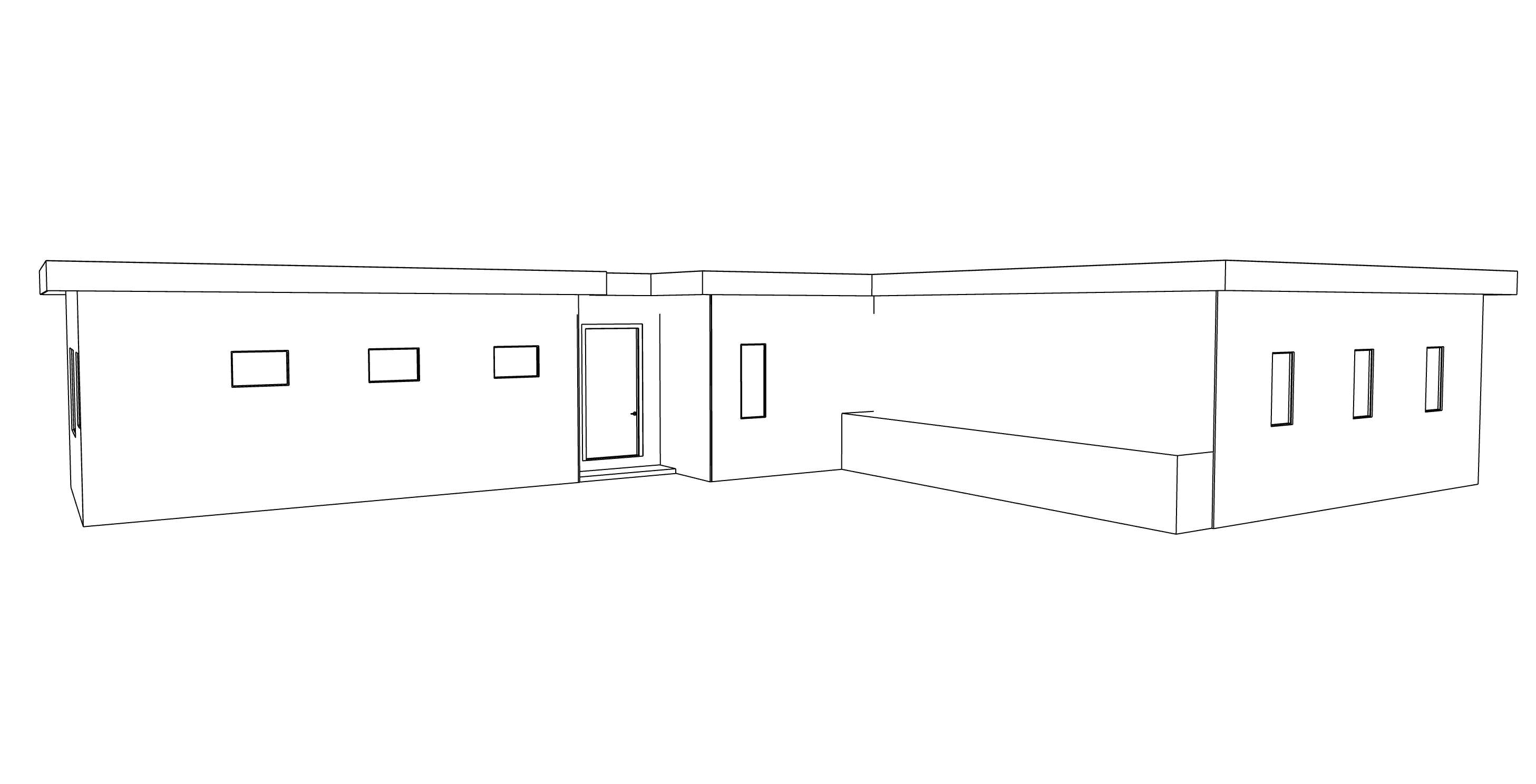 modernist exterior shot apply a light greige smooth stucco a dark bronze metal overhang dark bronze window frames and a white oak vertical paneled front door architecture