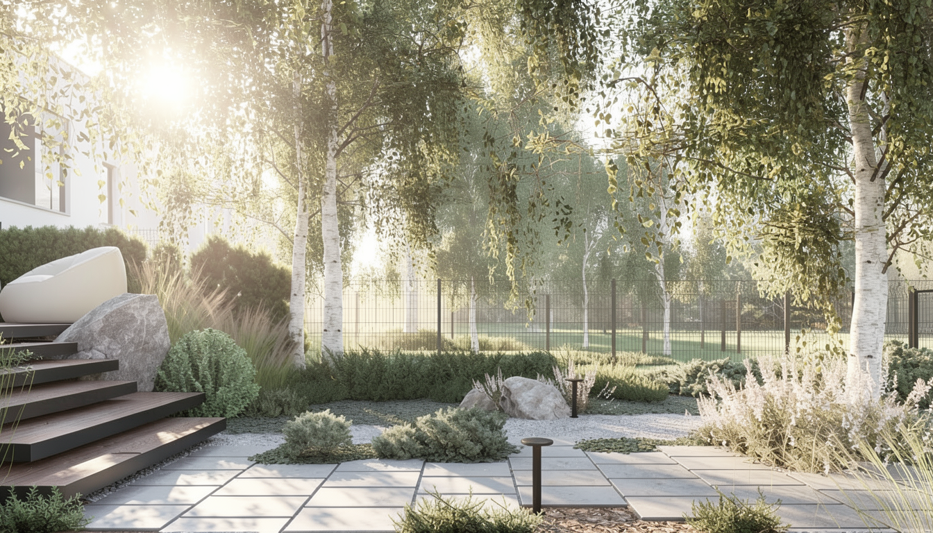 sure here s a prompt for the ai image generator render a picturesque suburban neighborhood with contemporary houses the central house is a modern minimalist design with beige and brown wooden panels the roof tiles are earthy brown surrounding it are lush green lawns and neatly trimmed gardens the neighboring houses feature white walls and terracotta roofs the sky is a bright blue dotted with fluffy white clouds casting soft shadows the entire scene is bathed in warm golden afternoon sunlight creating a serene and inviting atmosphere