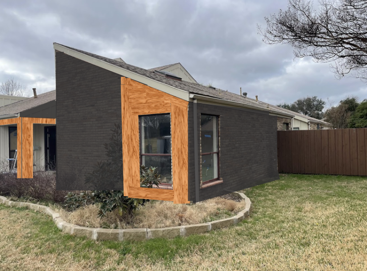 the black painted walls are black bricks and the wood parts are cedar wood cladding