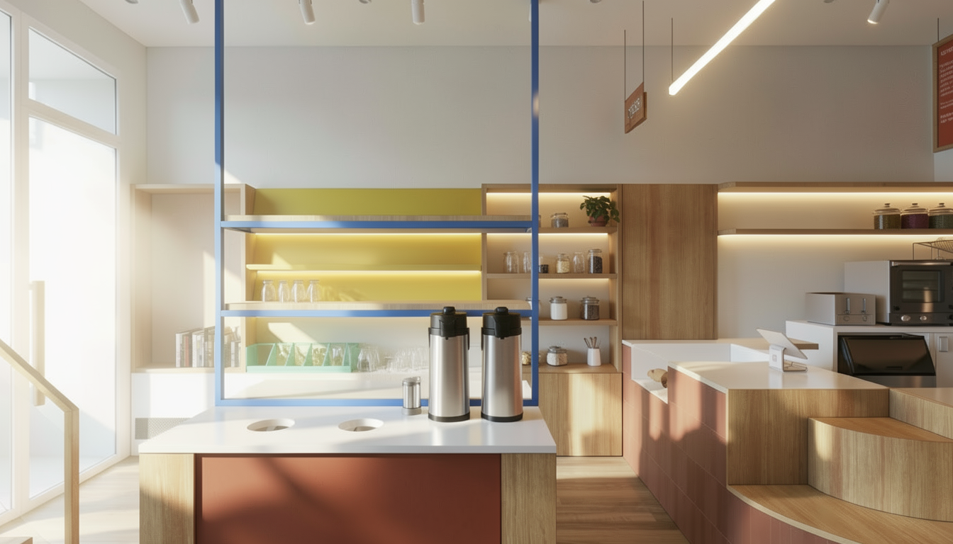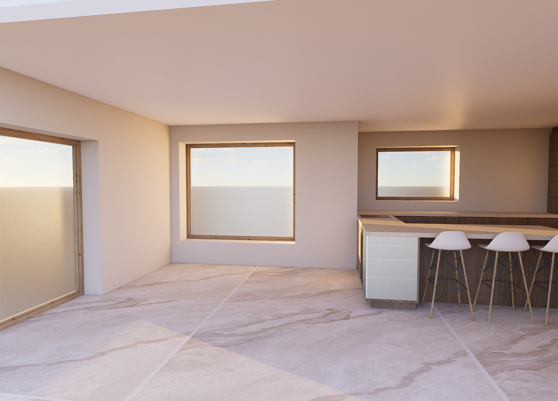 add dining table and chair and decoration the interior design style is the same as before make more realistic add nature behind the window