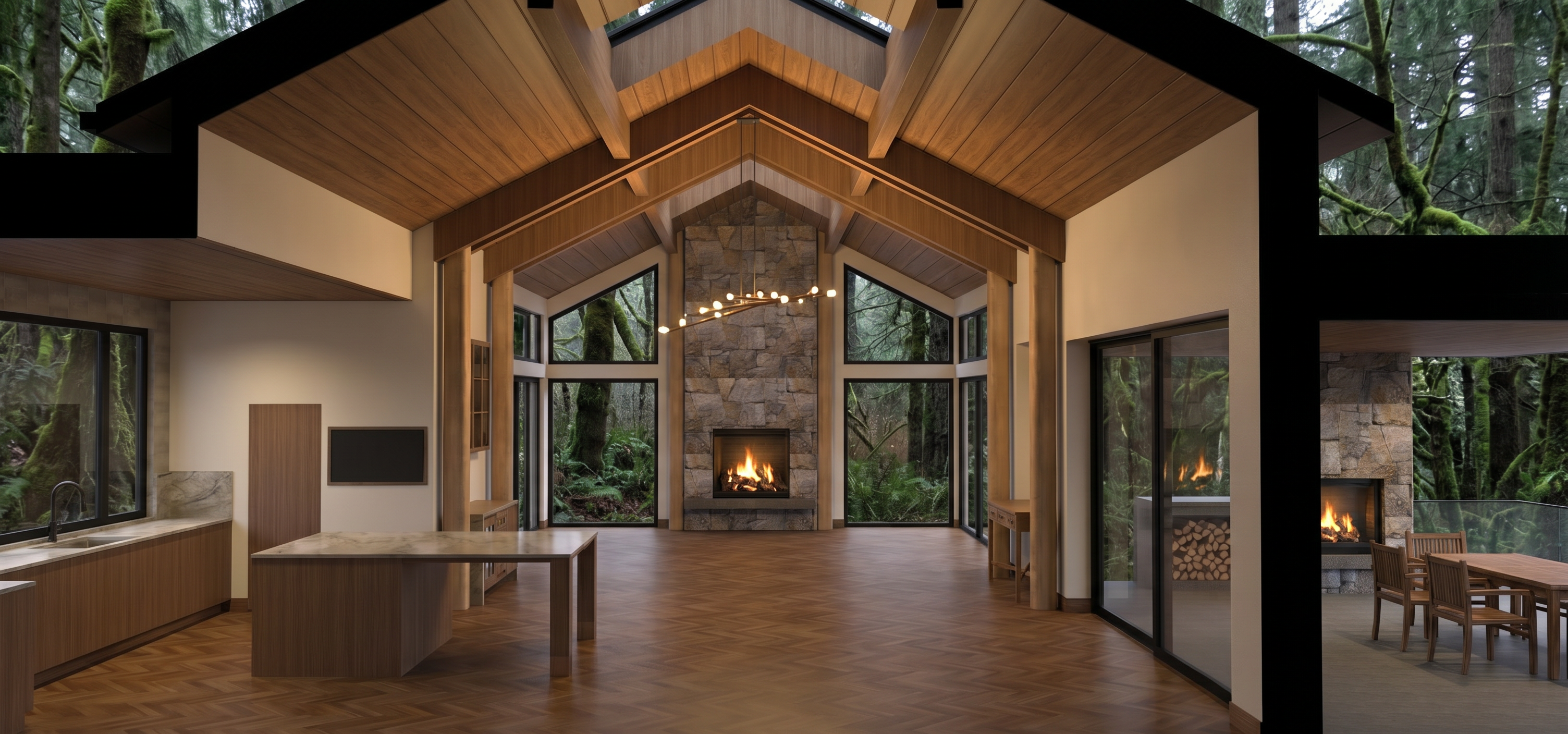 replace the wood with stucco do not change any windows doors siding rooflines materials or proportions of the house do not modify any other areas of the image match perspective lighting and scale to the existing image