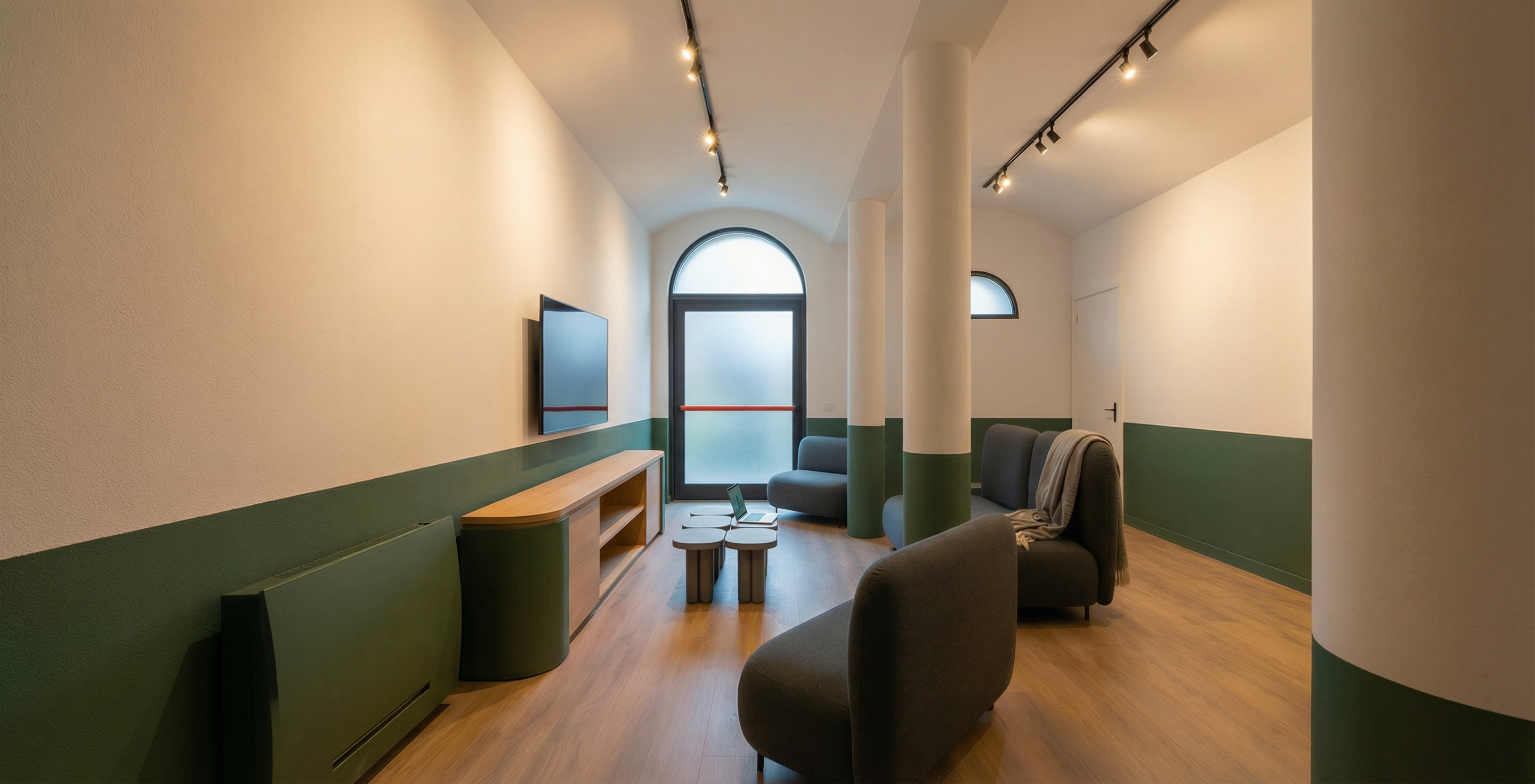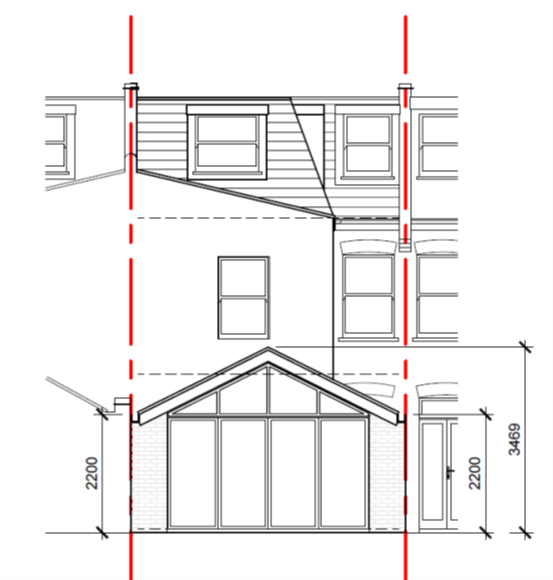 main house to be white painted render extension at lower level london style brickwork roof to be dark grey slate tiles white windows black doors