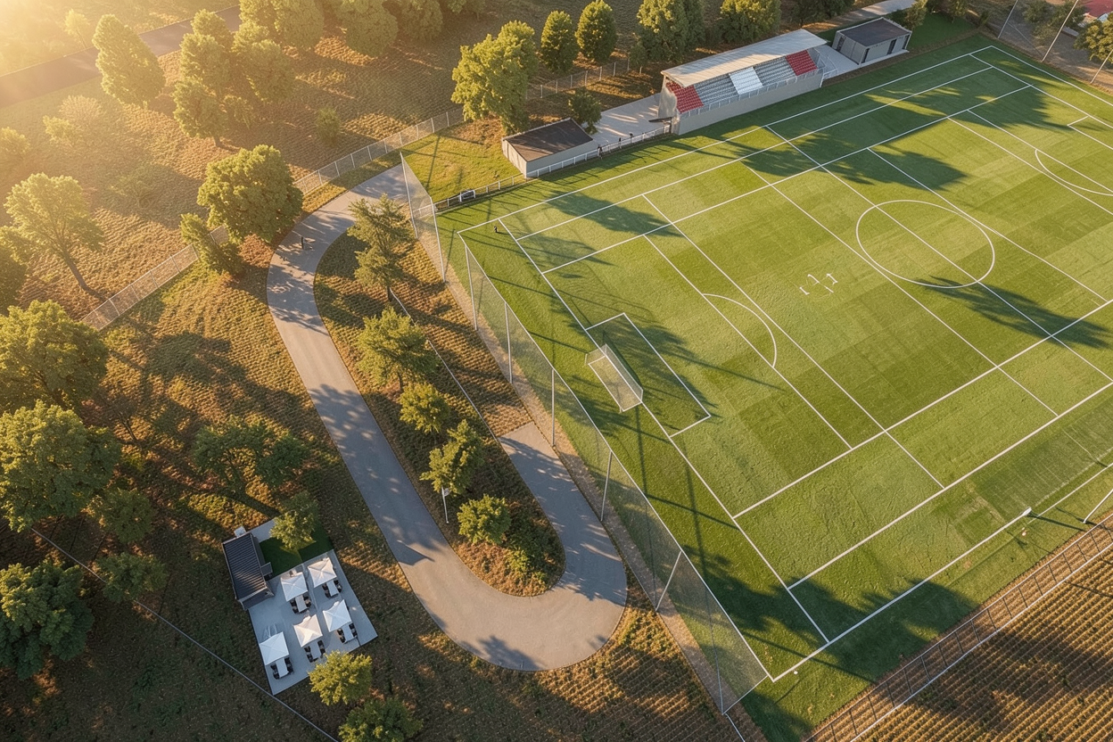 photorealistic architectural rendering of a contemporary australian rural home enhancing an existing lumion base image show modern designer living room furniture in the room to the left including a coffee table and sectional sofa on a large rug oriented towards a large flat screen tv on the left wall and an 8 seater timber dining table to the right the image looks out the glass over a pool in the middle ground across rolling green fields to a rocky mountain beyond introduce soft atmospheric depth abundant natural light with a warm low angle sun early morning or late afternoon creating gentle highlights and soft shadows refine materiality to feel tactile and true to life timber floor with visible grain and tonal variation with boards laid running left to right glazing with realistic reflections and slight interior transparency add understated warm interior lighting 2700k 3000k to create a soft glow ensuring it feels natural and not overexposed balance interior and exterior lighting so neither dominates enhance landscaping with slight movement and realism softened edges and subtle tonal variation in grasses and foliage introduce light environmental effects e g faint haze diffused background to increase depth and atmosphere overall mood should be warm calm and evocative slightly ethereal but grounded in realism avoid overly dramatic contrast or stylisation aim for a premium architectural photography aesthetic with a cinematic softness