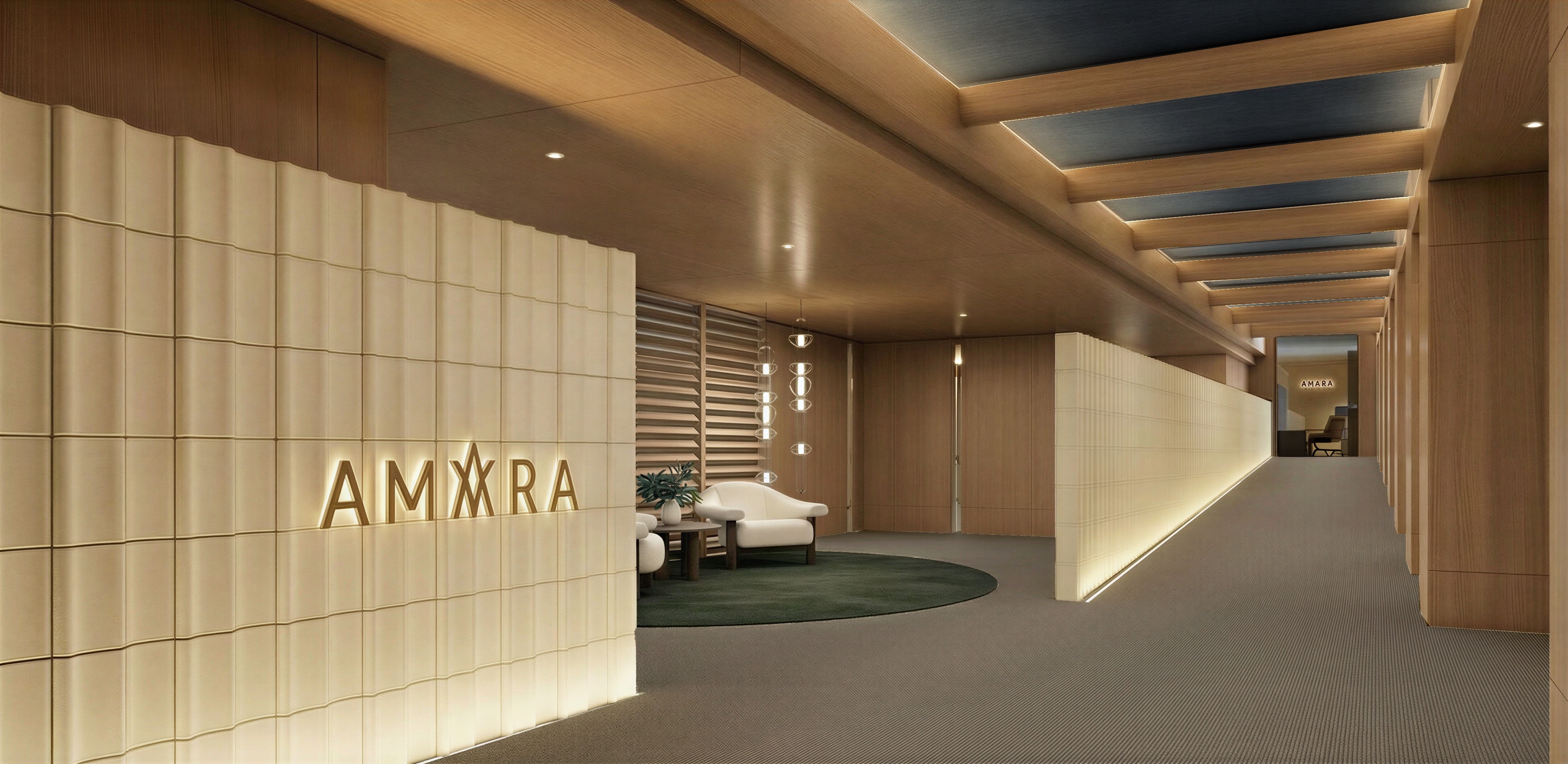 change the herring bone flooring to an off white multi loop level carpet brighten up the white tiles up to 30 create a matte finish for the wood help me change rug to blue colours this is a confined space no sunlight in the render