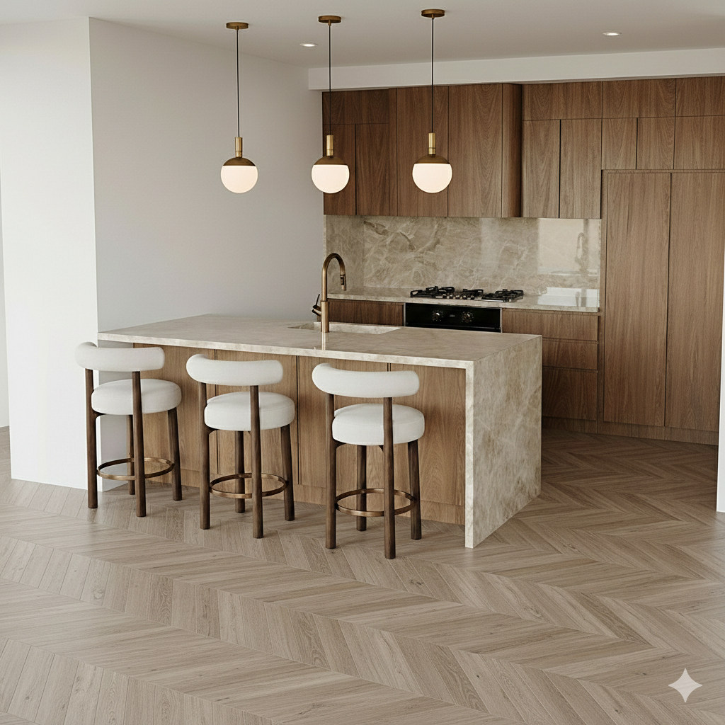 make a front on perspective clean up the blurriness of the stove and oven the stove base is the marble benchtop and the hardware is the same colour as the tap