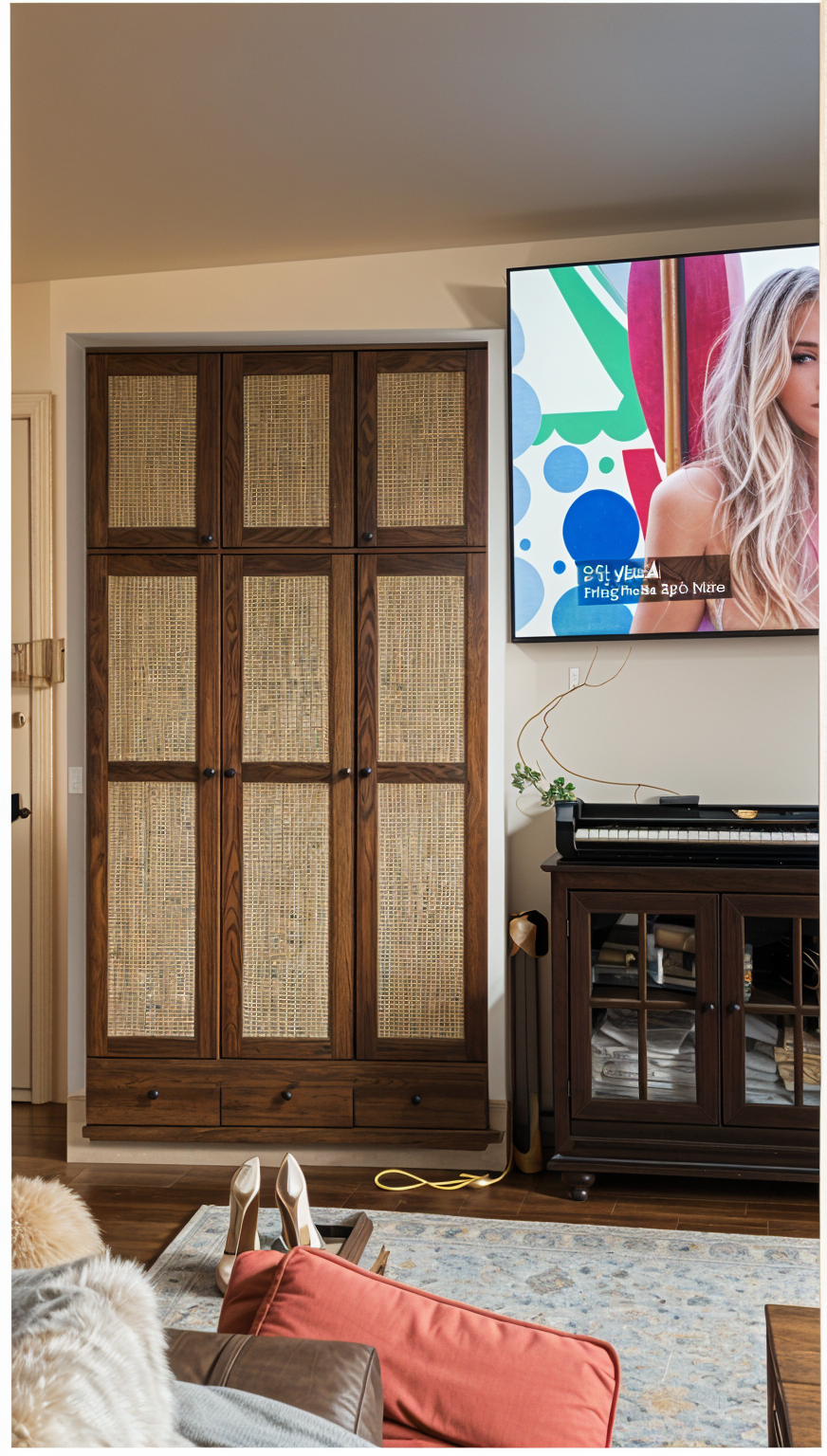 retain blinds at window reflection brighten image a little add light drama add black handle for closet