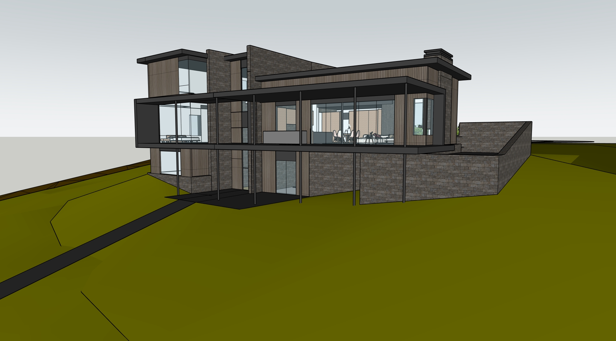 render this do not add any objects the home sits on a hill in a wooded area