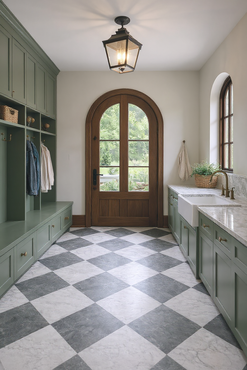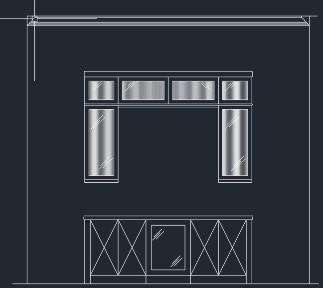 show cabinetry as drawn wine cooler is centered on bottom cabinetry navy blue cabinets long upper doors doors are gold reeded glass on all upper doors blue precious stone countertop