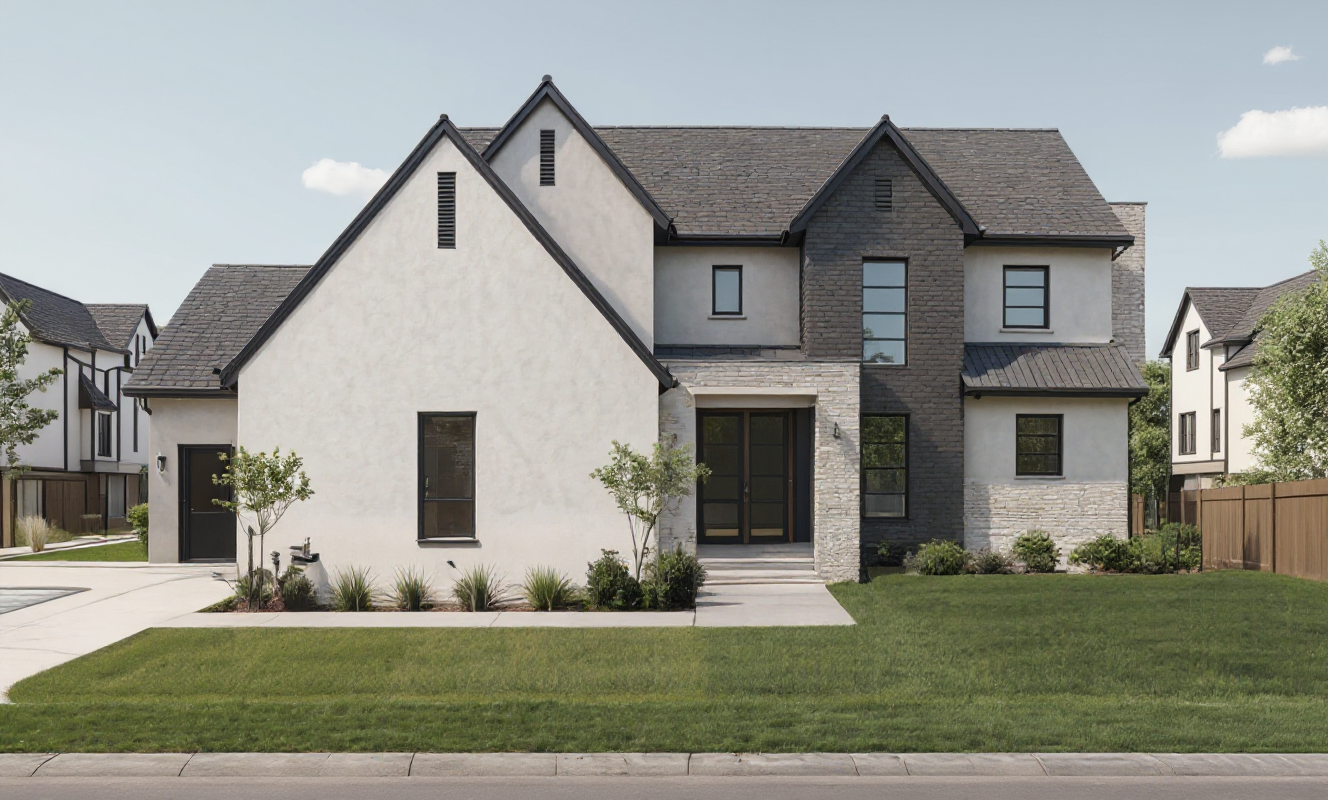 stuco the whole house except the entrance wall and the tall stairs wall architecture