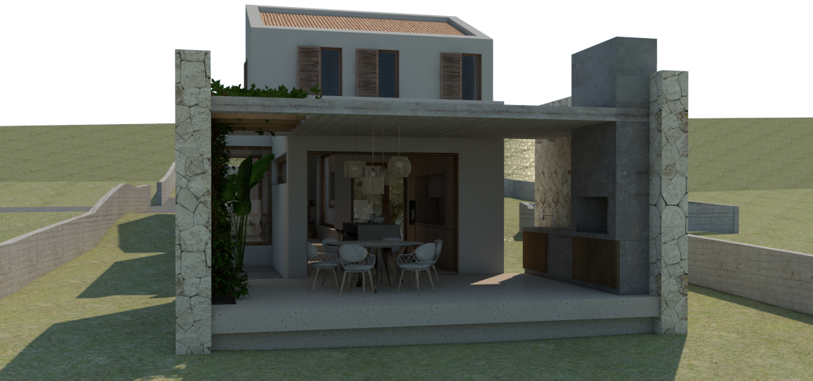 sunny day add mediterranean low vegetation turn on the pendant lights on terrace turn on fire in fireplace