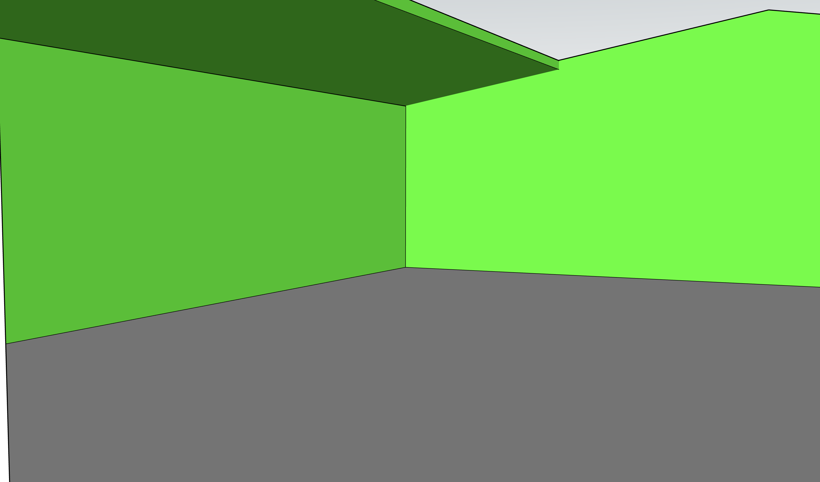the reference image shows a view of the corner of a building modelled in simple green shading i will be building internal walls and a partial ceiling inside the building that are in the style of a very old timber framed farm barn i want you to generate a render of a view from inside the building g as seen by someone standing in the space at eye level it is an interior of a very old timber framed farm barn the interior set must stand within the metal building it should appear that they are standing inside an old barn the walls are made up of large heavy timbers and rough sawn aged and dusty planks there are large support posts that would be used to hold a roof up the floor appears to be hard compressed mud and is littered with hay and animal bedding cracks and gaps in the boards allow sunlight to leak through from outside and dust can be seen hanging in the air