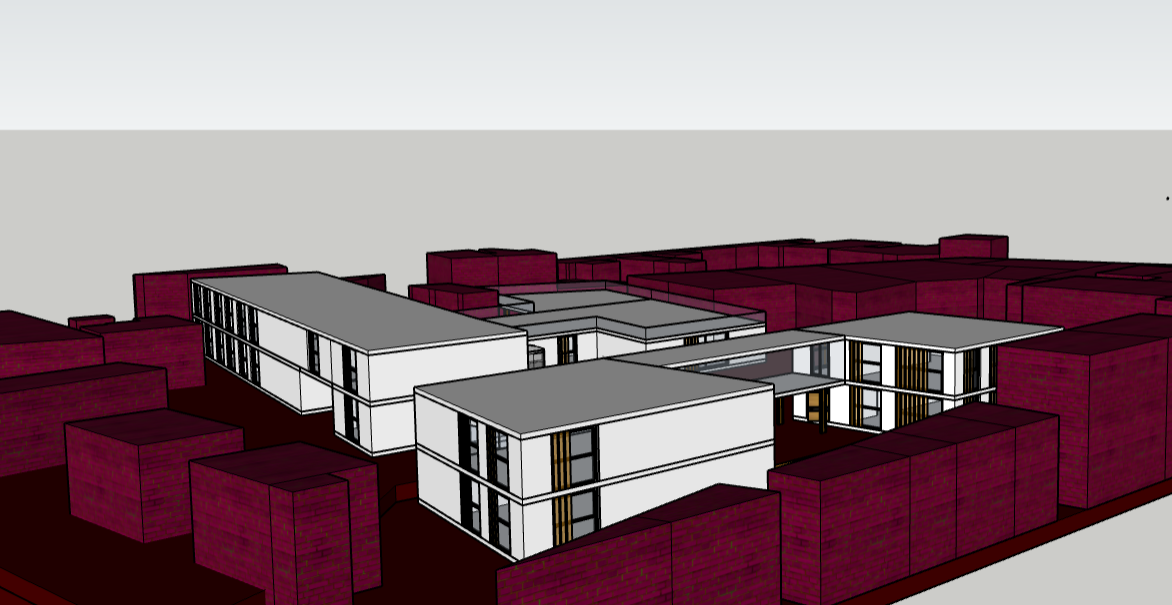 contemporary perspective shot render in chania during sunset with concrete beige walls keep the red parts red architecture