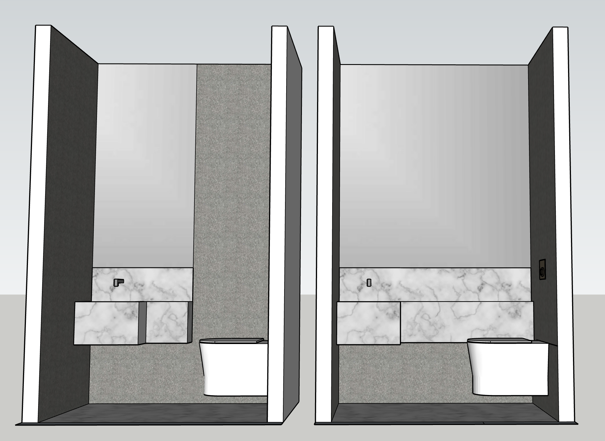 create photo realistic rendering marble sink lots of dark veining mirror above textured grey walls