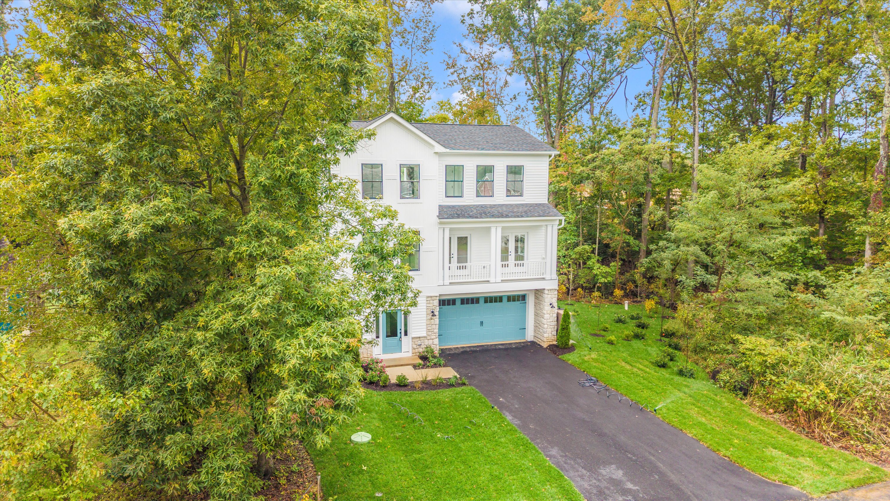 place the exact home in the first photo into the reference photo make the first level of the home proportionate with the single level home next door keep the house exactly the same color and architecture and make the driveway come straight off the street in the reference photo keep the home within the black perimeter in the reference photo