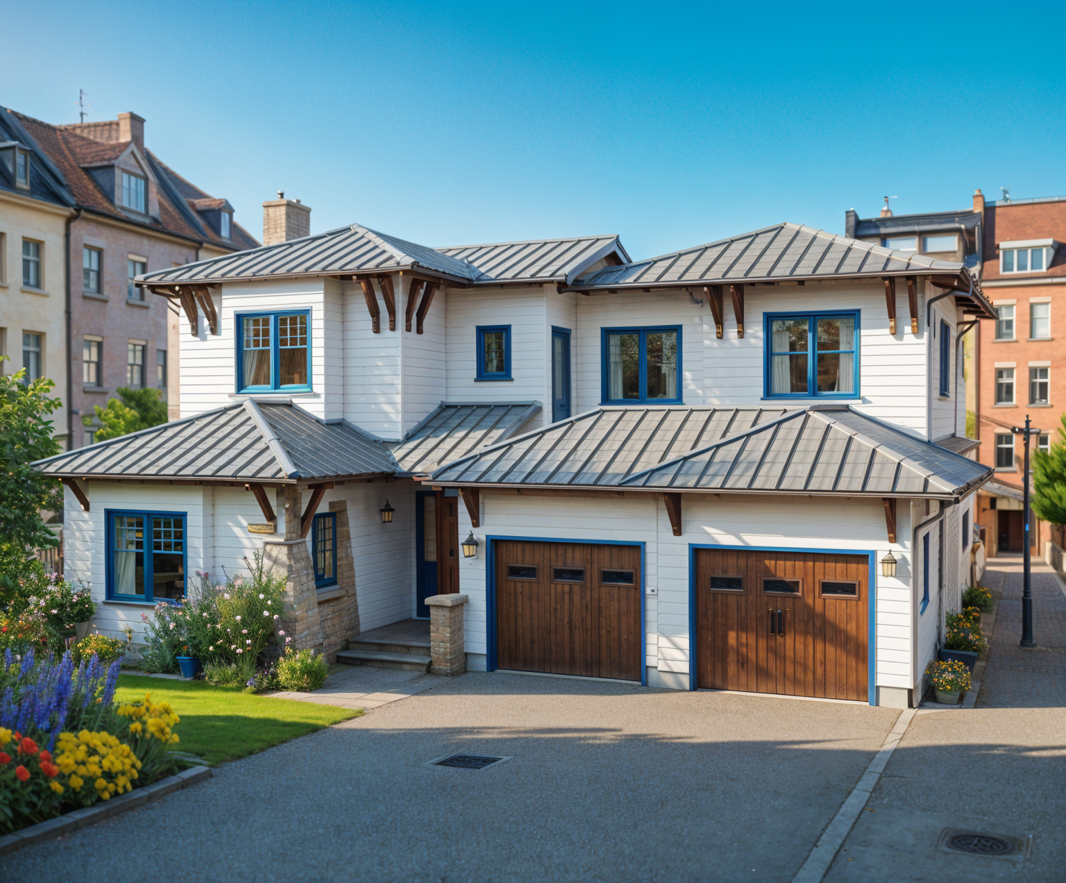 detail shot kominek kaflowy z kaflami w kolorze karminowym meble w kuchni w kolorze szarej zieleni frezowane schody stalowe loftowe pod wietlone architecture